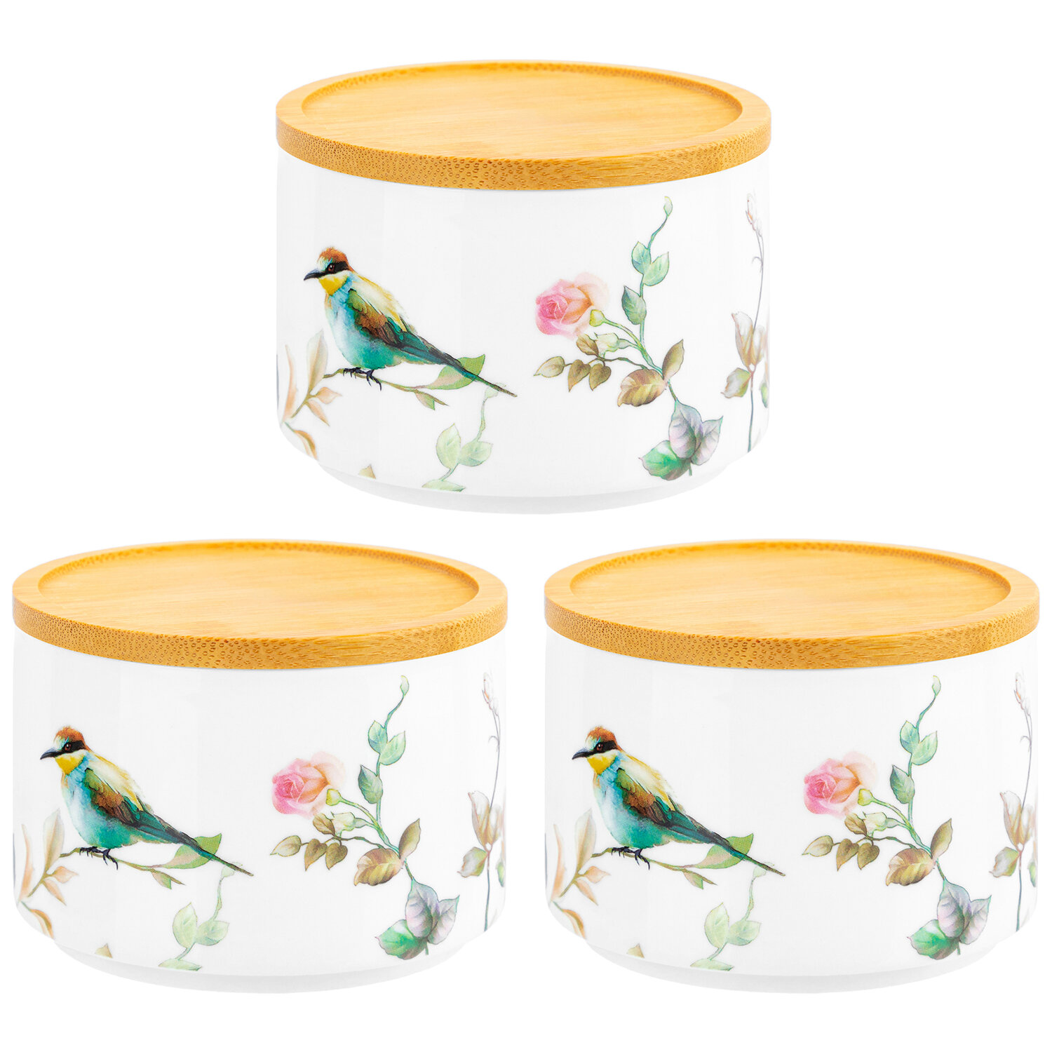 Банка для хранения сыпучих продуктов, специй 3шт 250мл Elan Gallery Певчие птички, с дер. крышкой-подставкой, набор интересное: