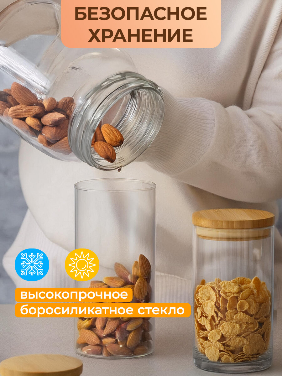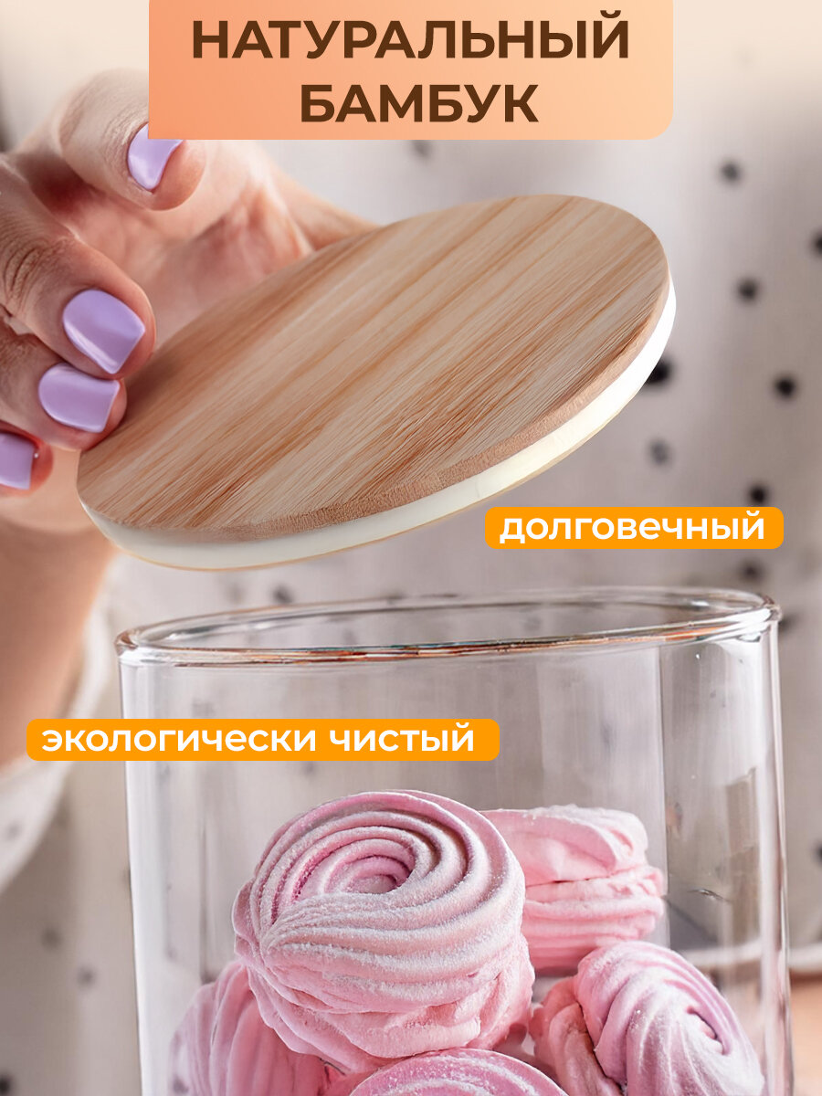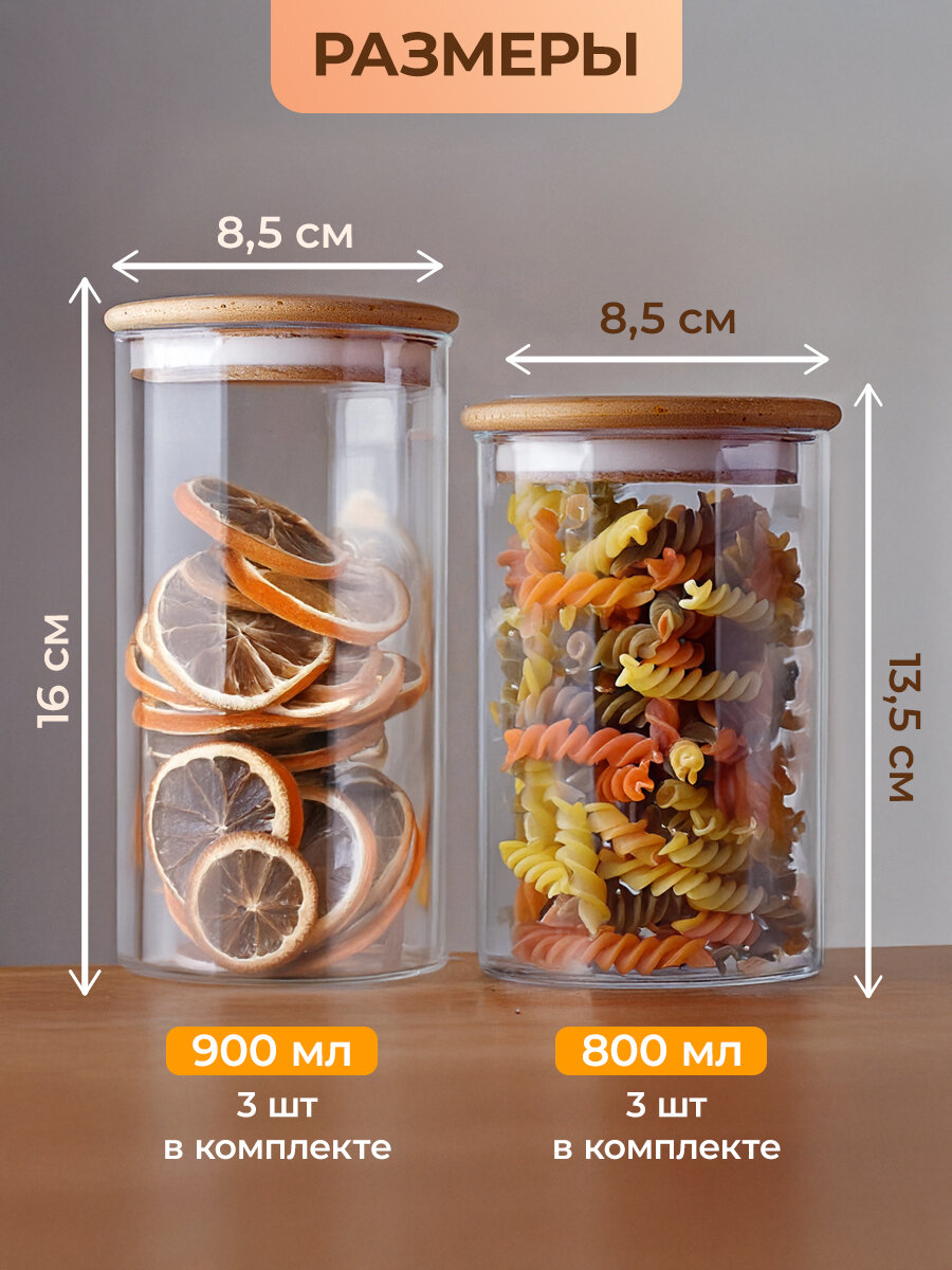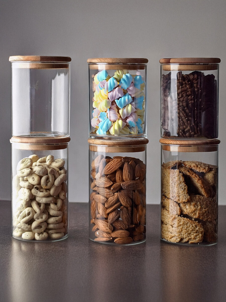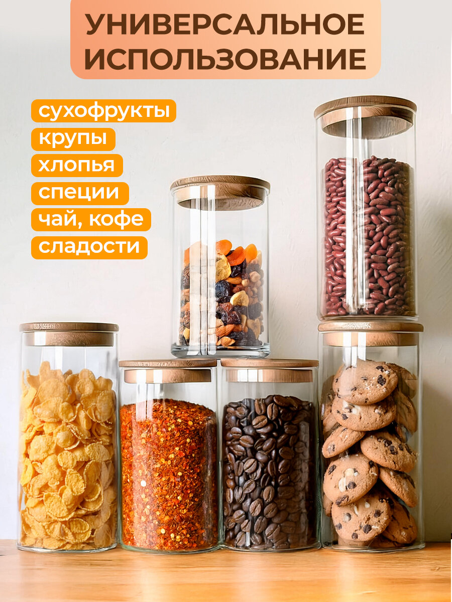 Банки для сыпучих продуктов WOWZILLA, набор из 6 банок, стекло, бамбуковые крышки интересное: