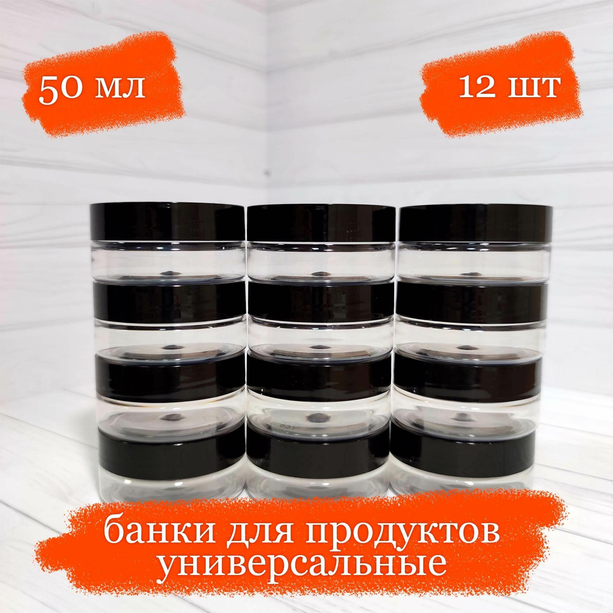 Банки пластиковые для продуктов универсальные с чёрной крышкой - 50 мл - 12 шт интересное: