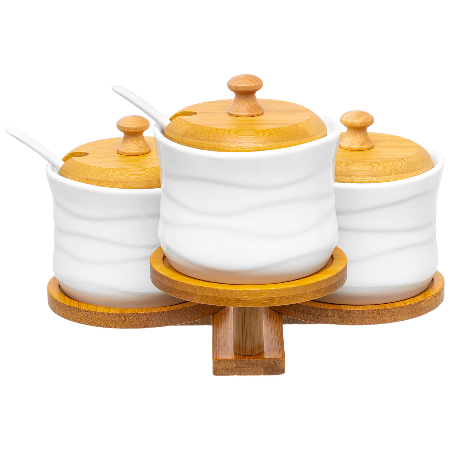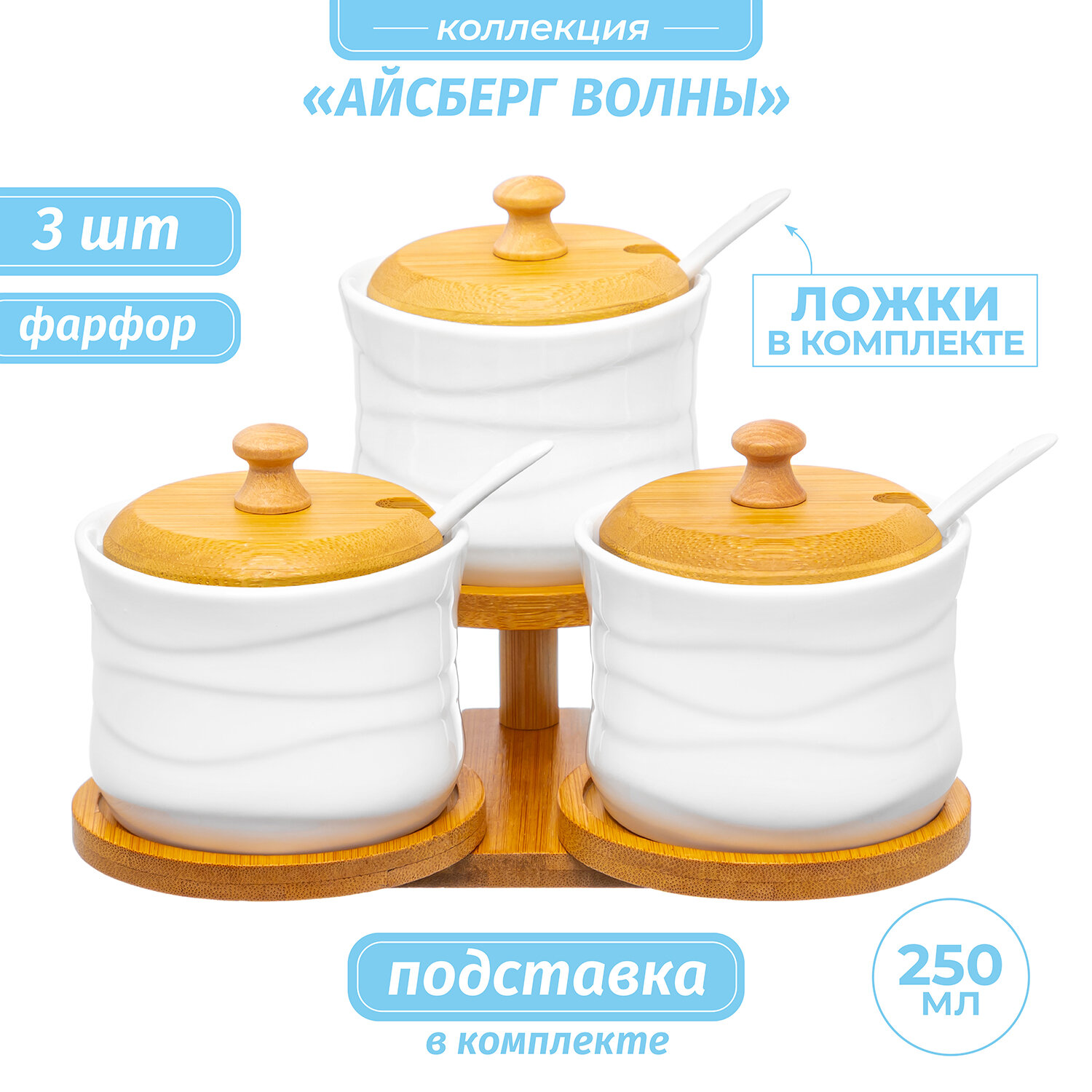 Банка для хранения сыпучих продуктов, соли, специй, чая 3 шт 250 мл Elan Gallery Айсберг + ложки, на подставке, набор интересное: