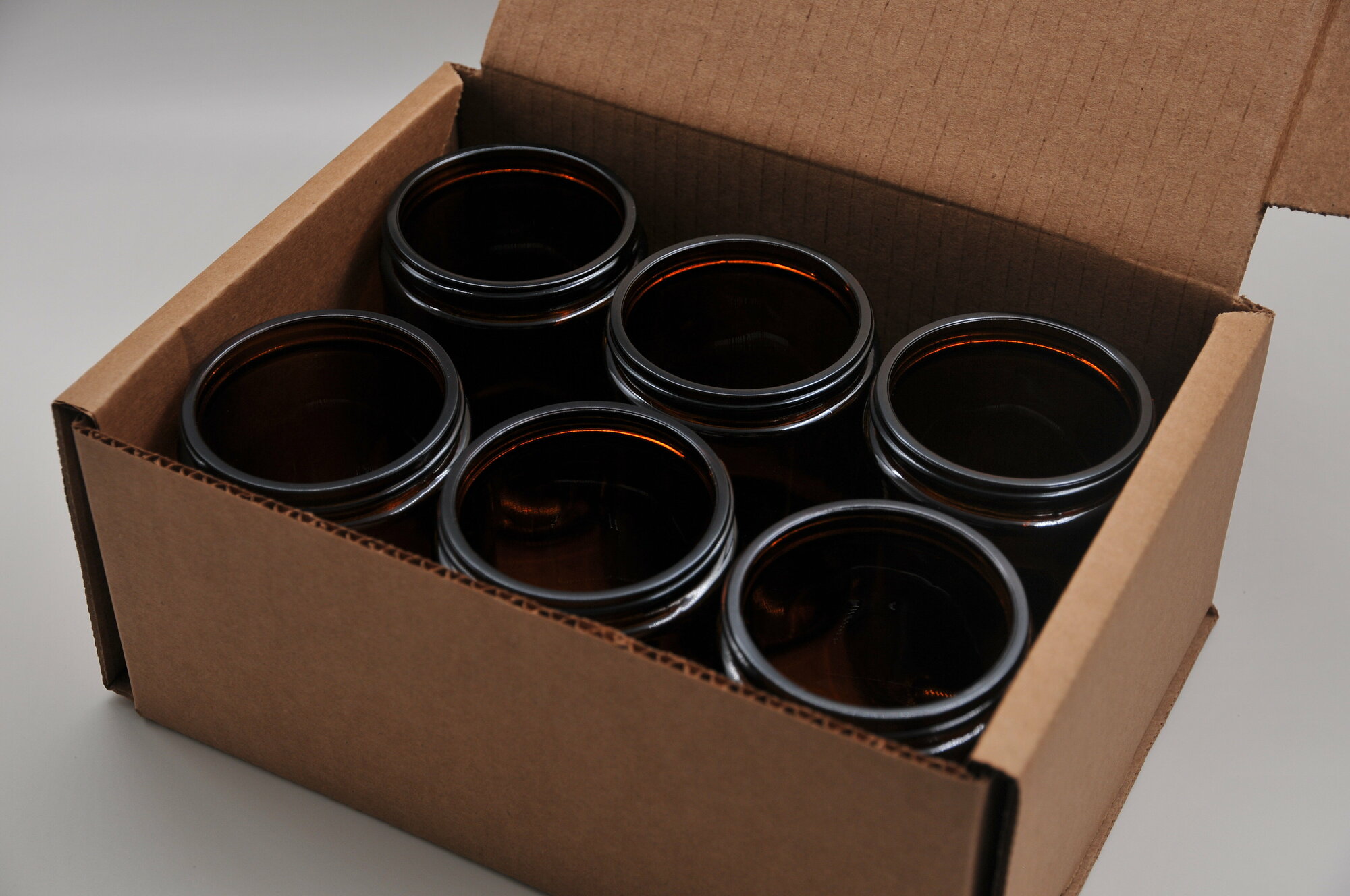 Купить Стеклянная банка янтарная/коричневая объемом 250мл без крышки 6 штук