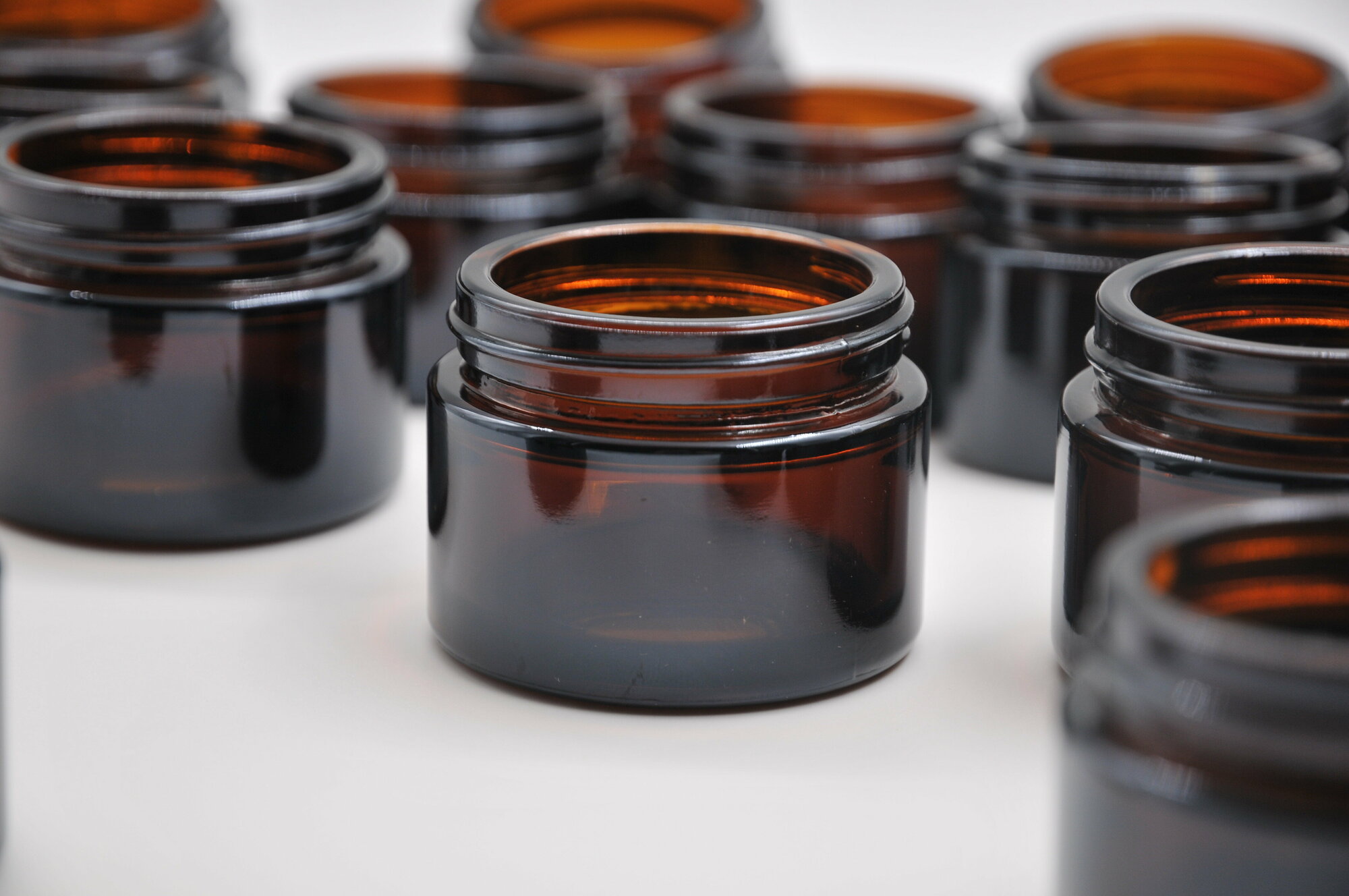 Купить Стеклянная банка янтарная/коричневая объемом 50мл без крышки 22 штуки