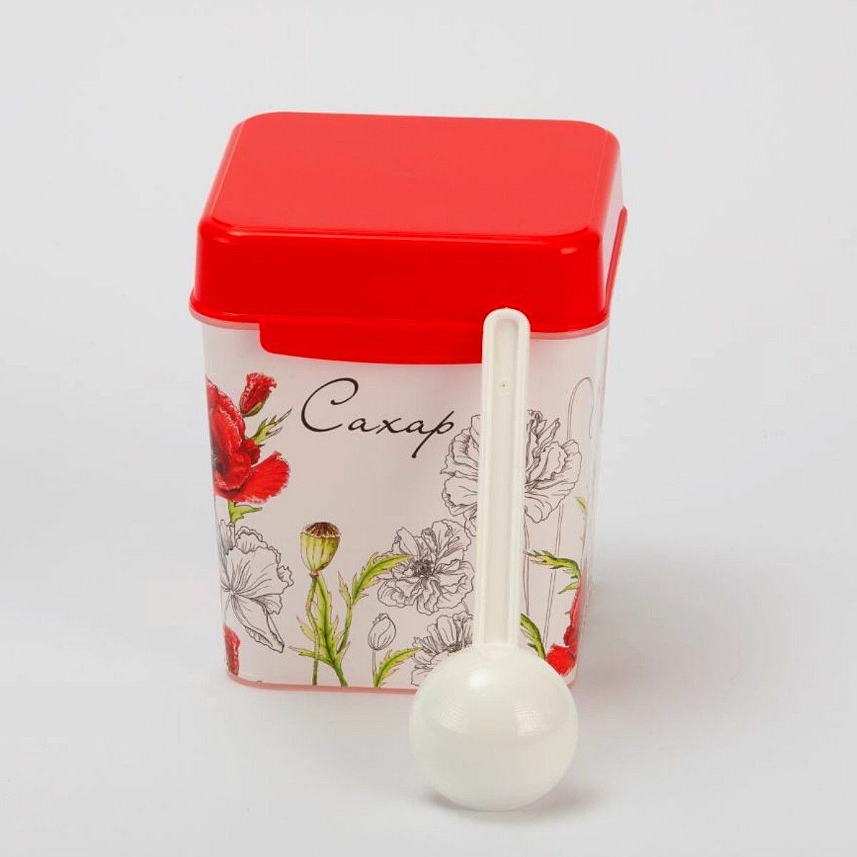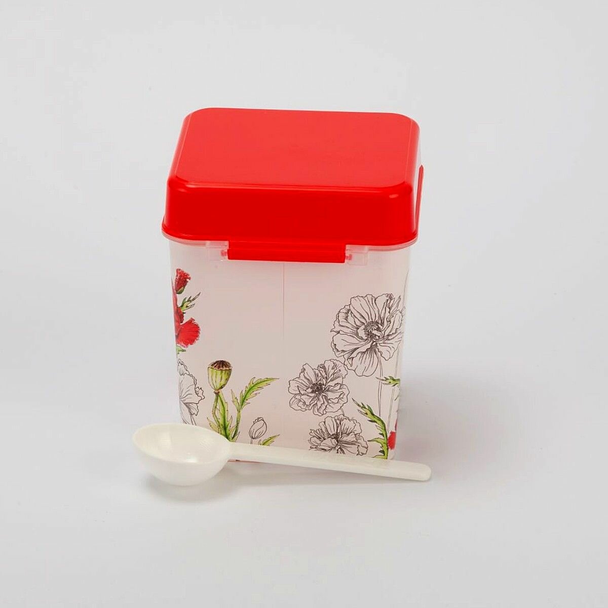 Купить Емкость для сыпучих продуктов с ложкой и крышкой пластиковая 1.2 л