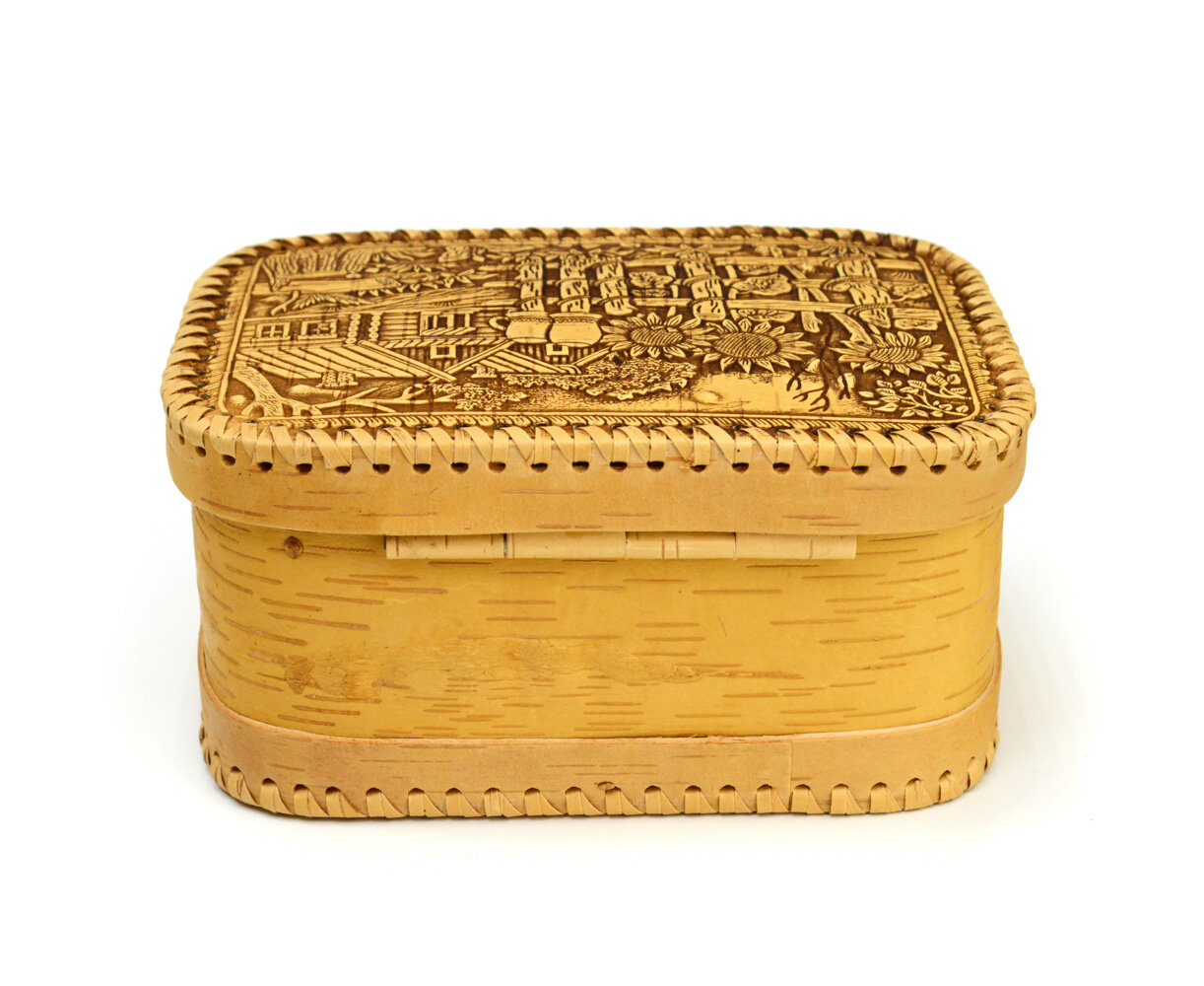 Купить Батонница на шарнире "Деревенька". Большая шкатулка из бересты
