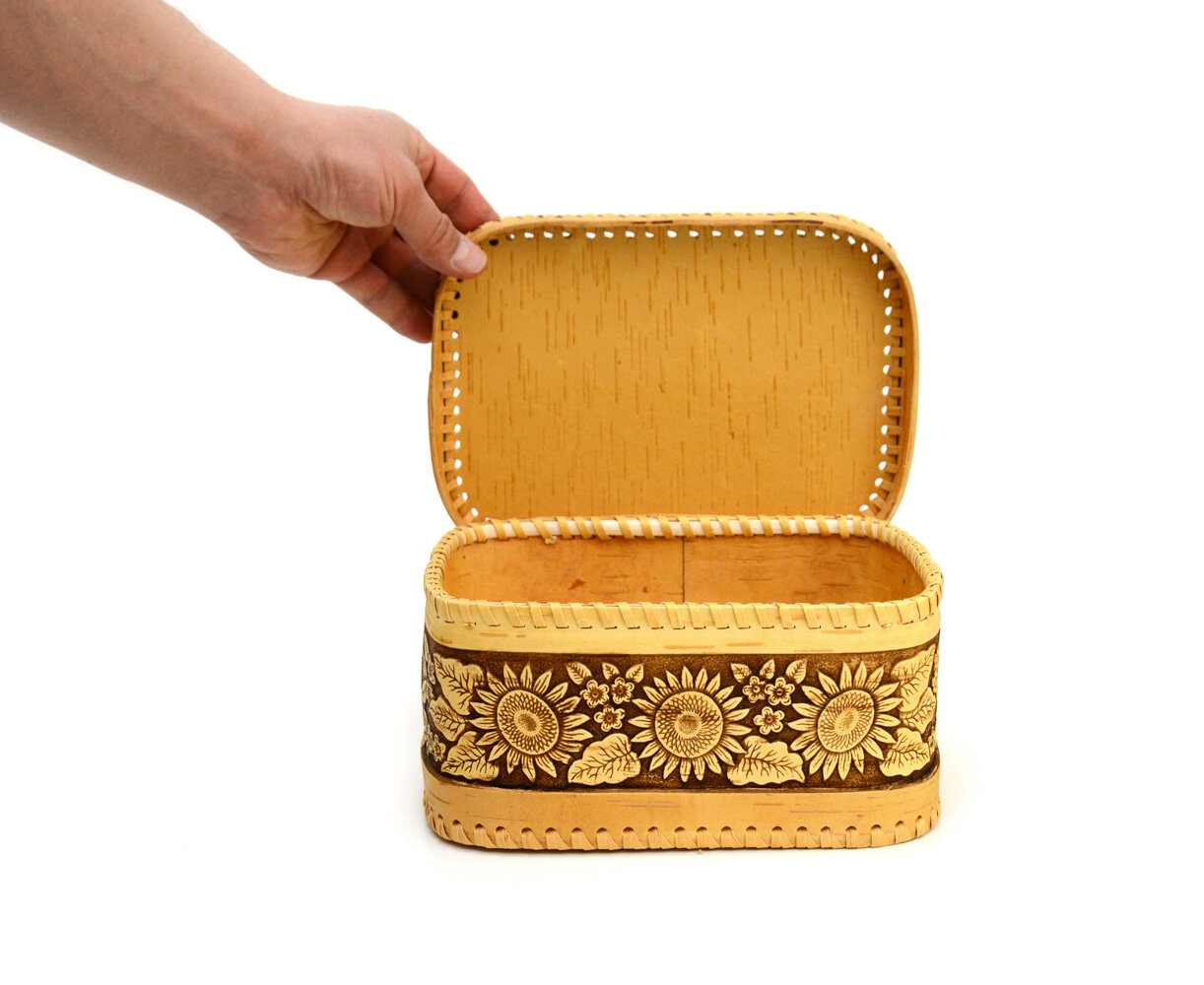 Батонница на шарнире "Лилии" 24х17х11. Шкатулка большая из бересты