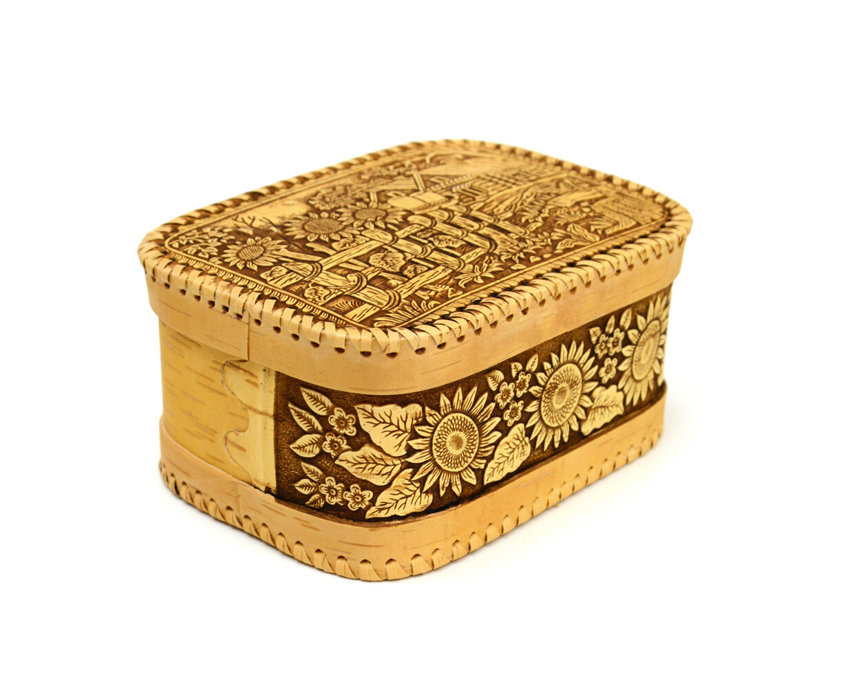 Батонница на шарнире "Деревенька". Большая шкатулка из бересты интересное:
