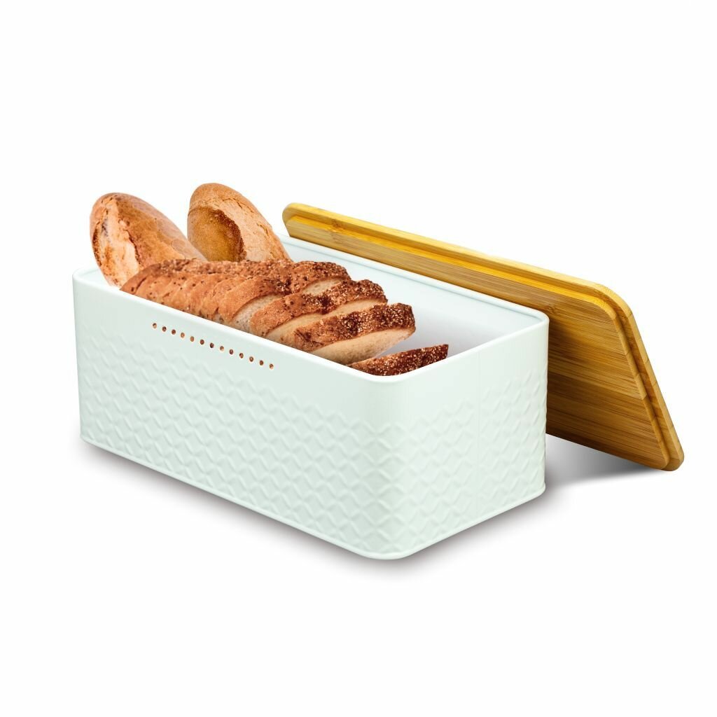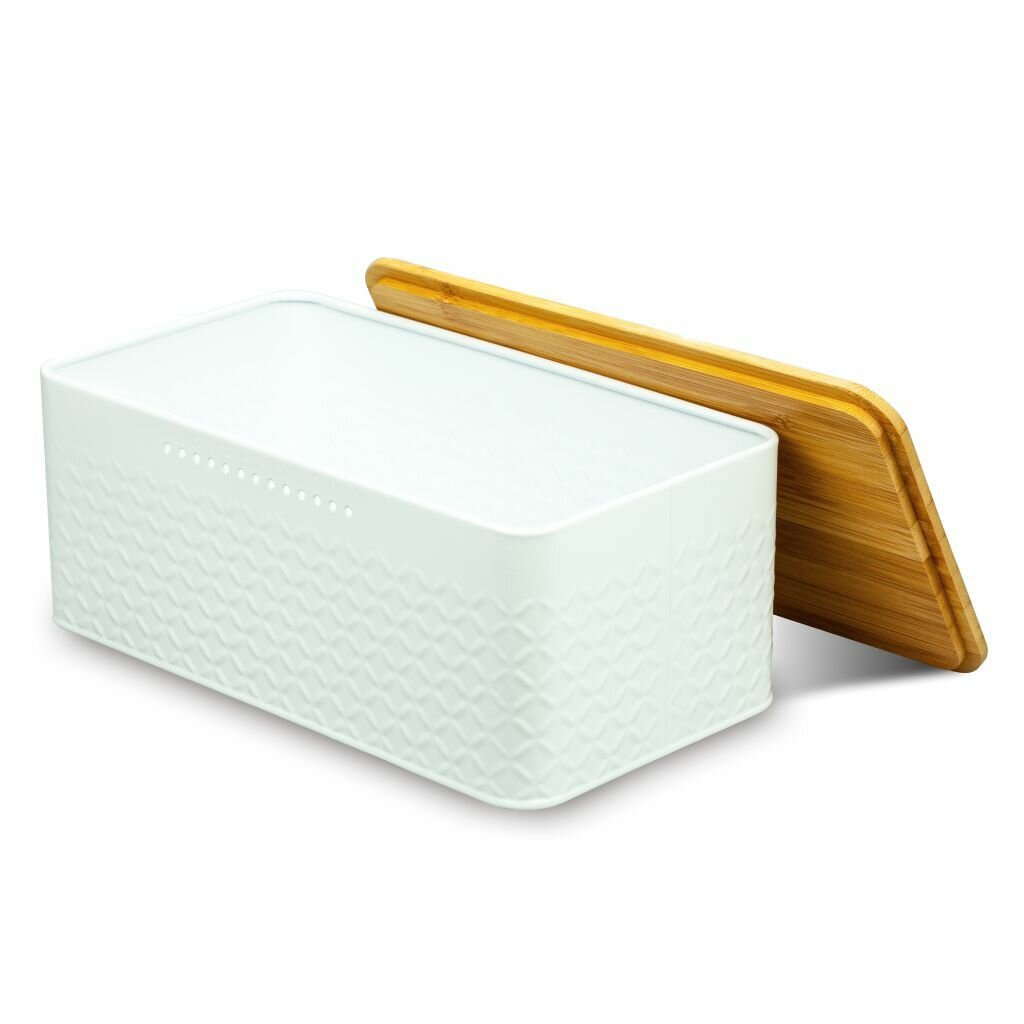 Хлебница металлическая Solmax&Home с крышкой и разделочной деревянной доской на кухню, сухарница, контейнер для хранения хлеба, 33х18х13,5, белая интересное: