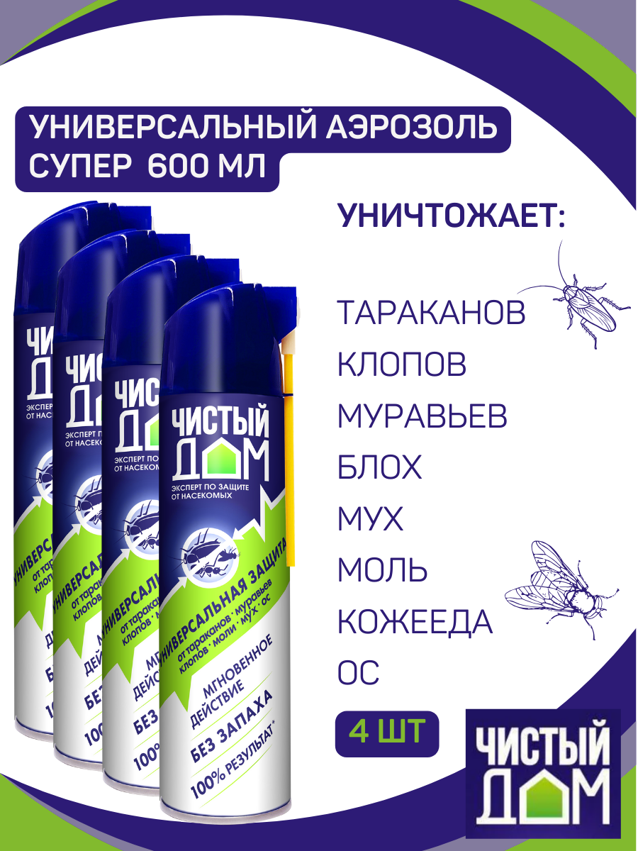 Аэрозоль от тараканов, муравьев, клопов, моли, мух, ос, 600 мл, 4 штуки интересное: