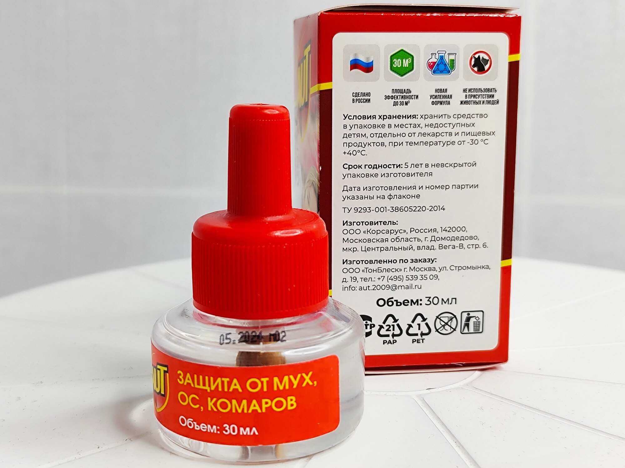 Жидкость для фумигаторов "АУТ", от мух, ос и комаров, 30 дней интересное: