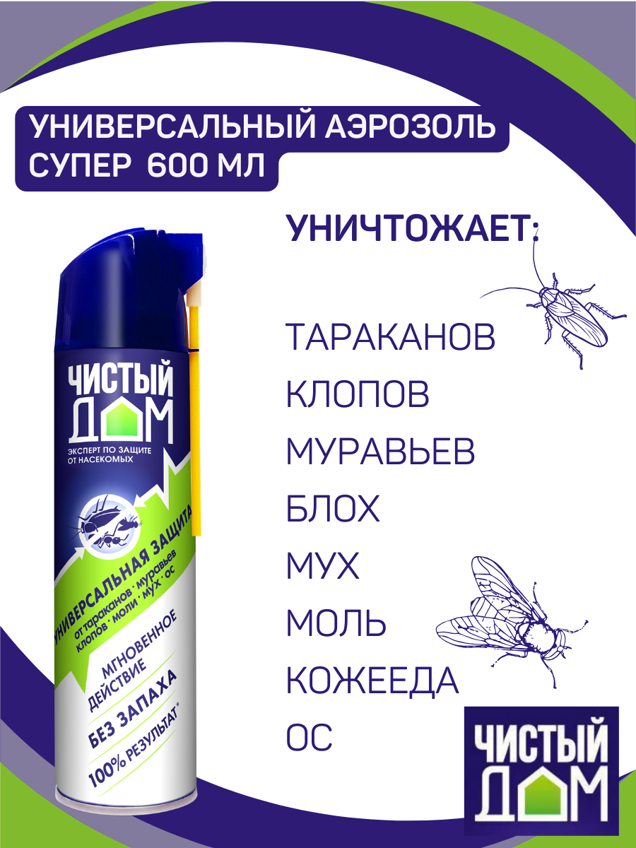 Аэрозоль от тараканов, муравьев, клопов, моли, мух, ос, 600 мл, 1 штука интересное: