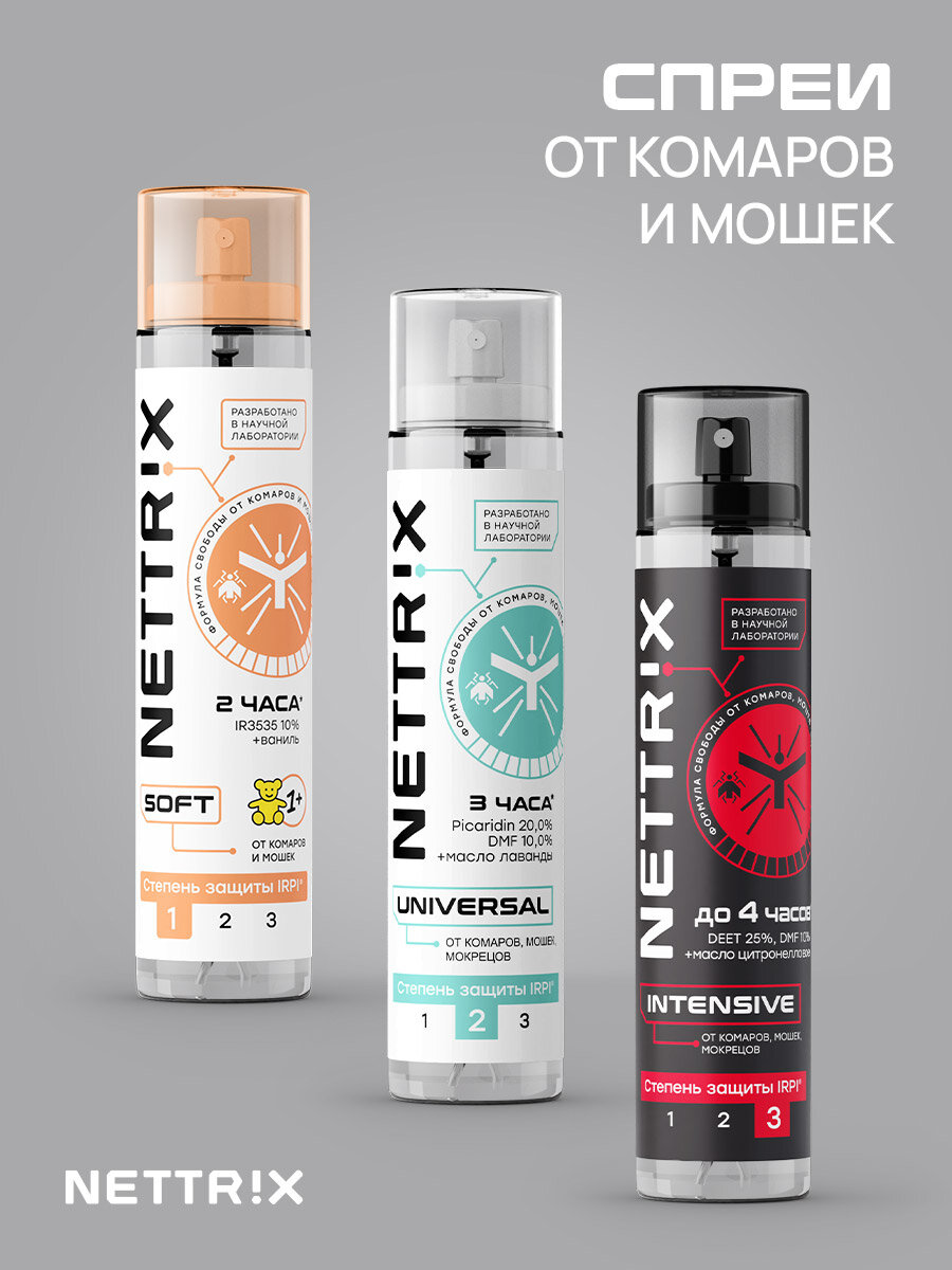 Ниже Вы можете прочитать отзывы на Средство для защиты от комаров и мошек NETTRIX Intensive, спрей 100 мл, ознакомится с подробными характеристиками, посмотреть интересные обзоры и фотографии на Средство для защиты от комаров и мошек NETTRIX Intensive, спрей 100 мл.
