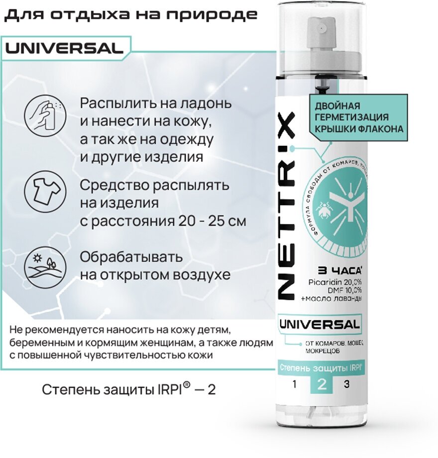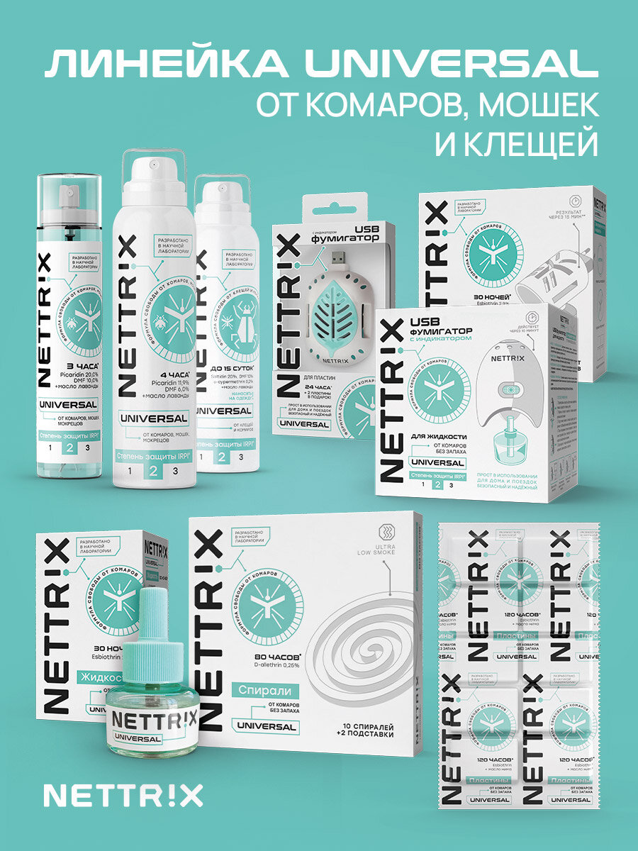 СохранитьСпрей для защиты от комаров, мошек, мокрецов NETTRIX Universal, 100 мл интересное: