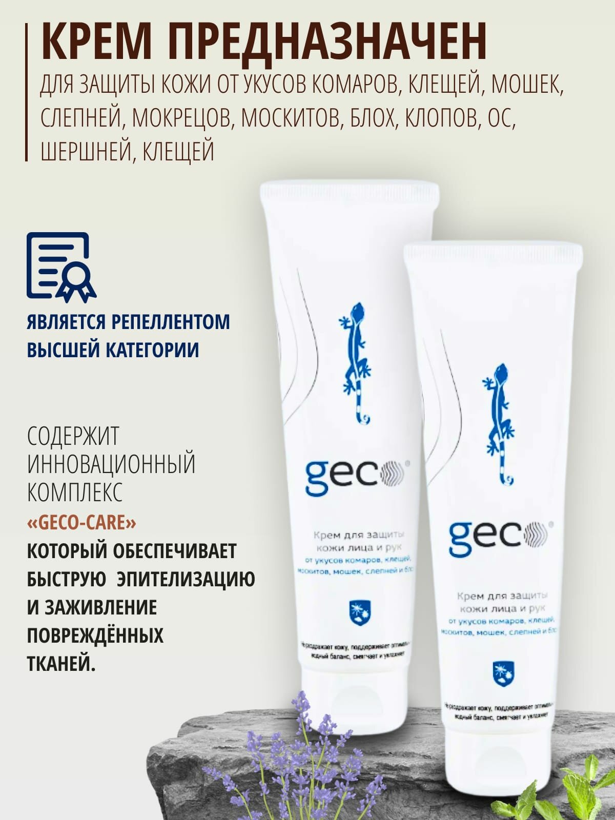 Крем для защиты кожи GEC, репеллент от укусов жалящих и кровососущих насекомых, 100 мл, 2 шт