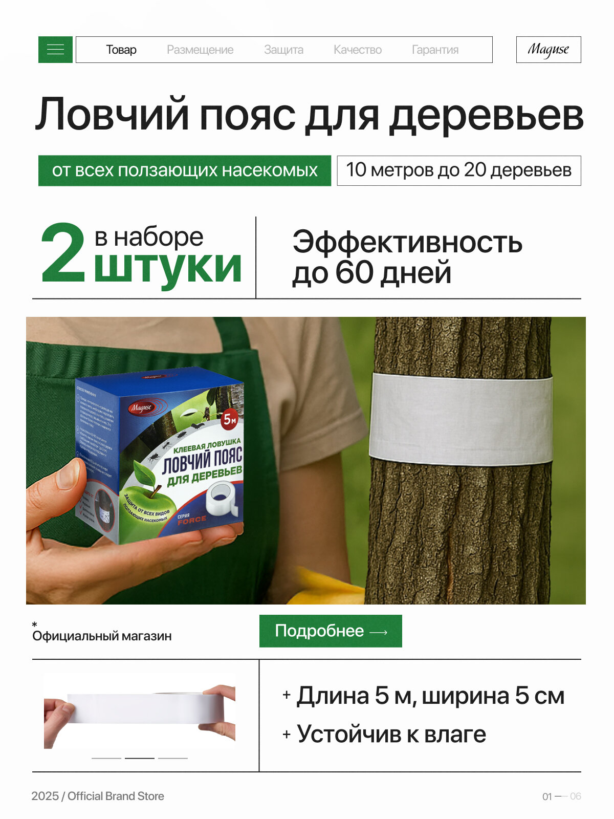 Ловчий пояс Maguse Force, клеевая ловушка на деревья от садовых вредителей, 5 метров, 2 шт интересное: