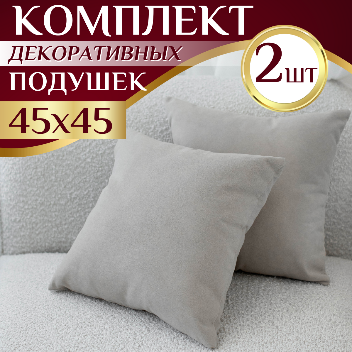 Купить Декоративная подушка велюр 45Х45, комплект 2шт, цвет темно-бежевый, наполнитель силиконизированное волокно