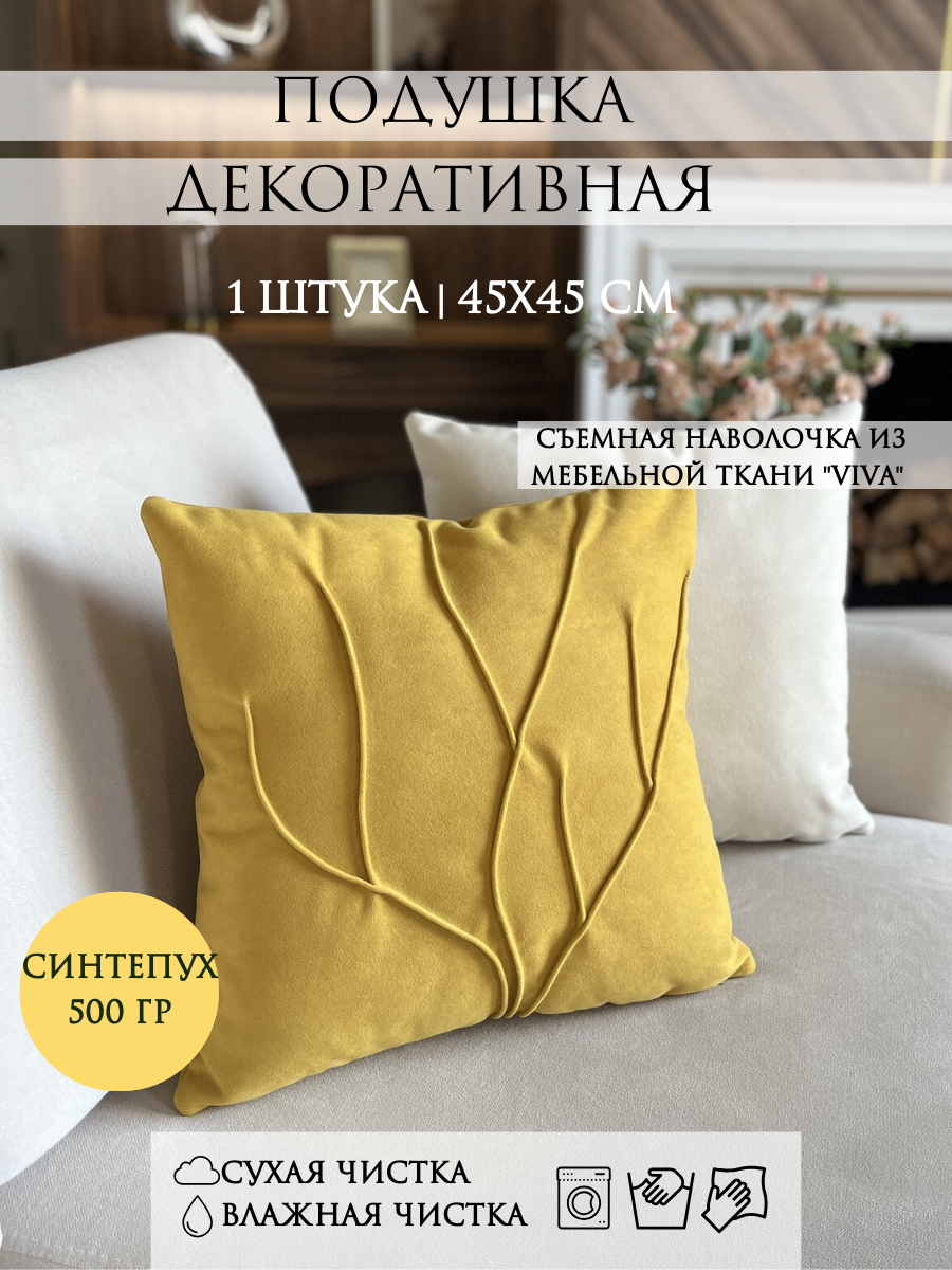 Подушка декоративная Yaki, 45х45 см, съемный чехол, горчичная 1 шт. интересное: