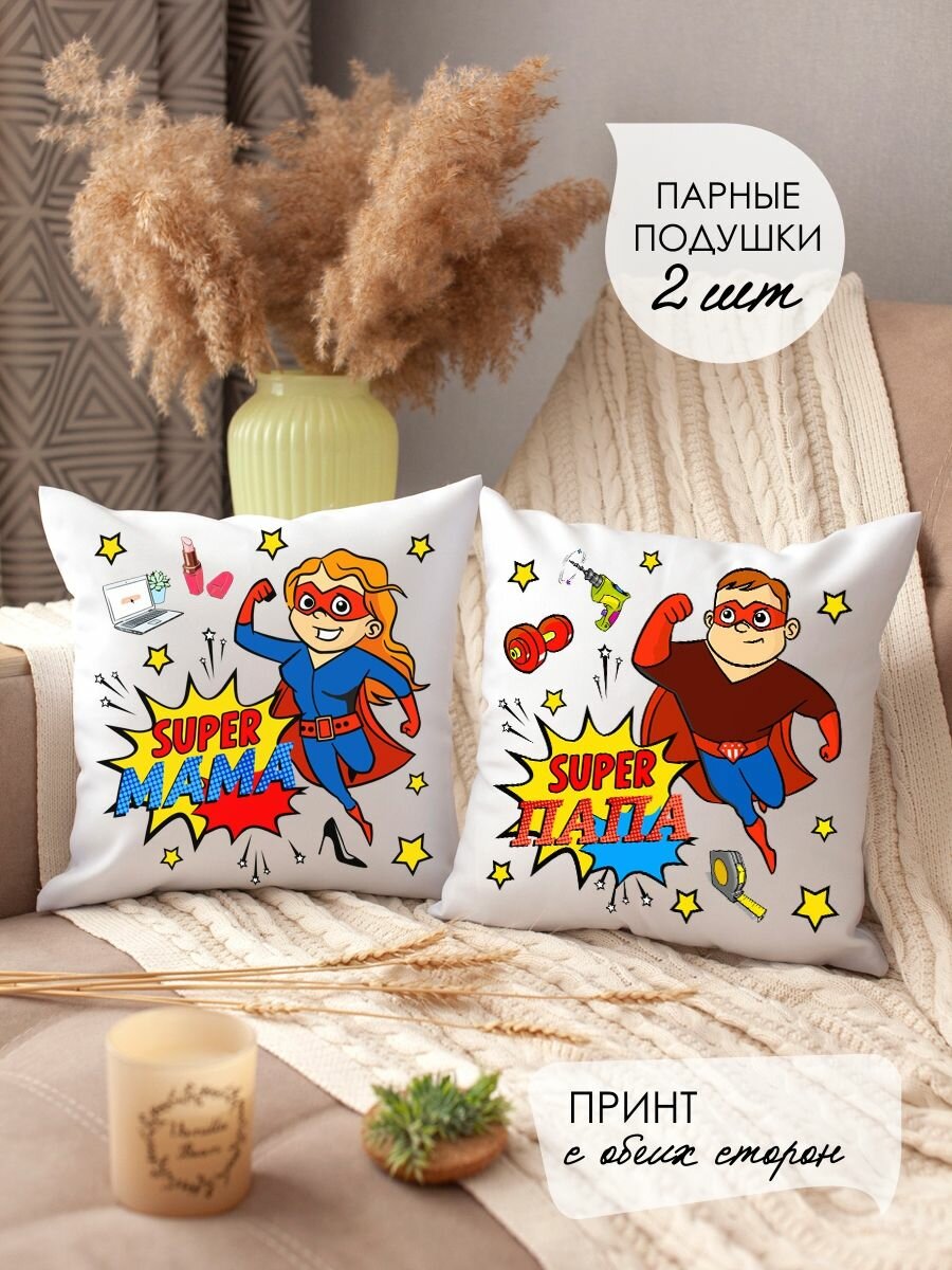Подушки декоративные парные маме и папе с принтом, диванные, 2шт в комплекте