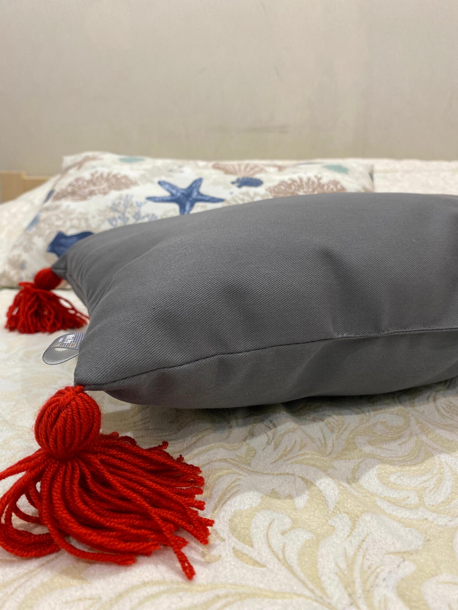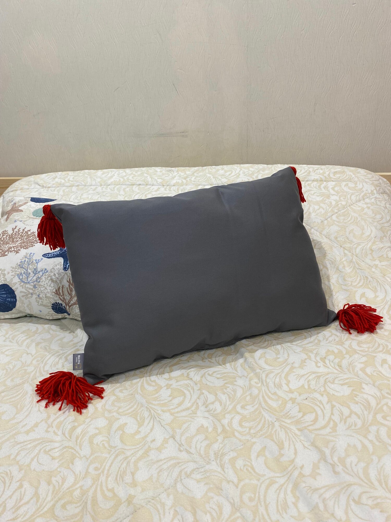 Купить Подушка декоративная с красными кисточками, 50*35, MotPro.brothers, серая