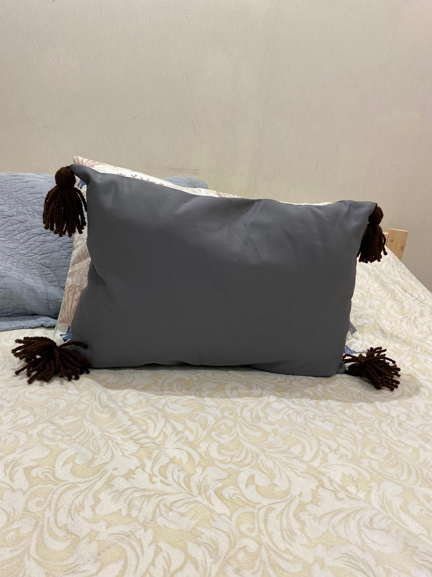 Подушка декоративная с голубыми кисточками, 50*35, MotPro.brothers, серая