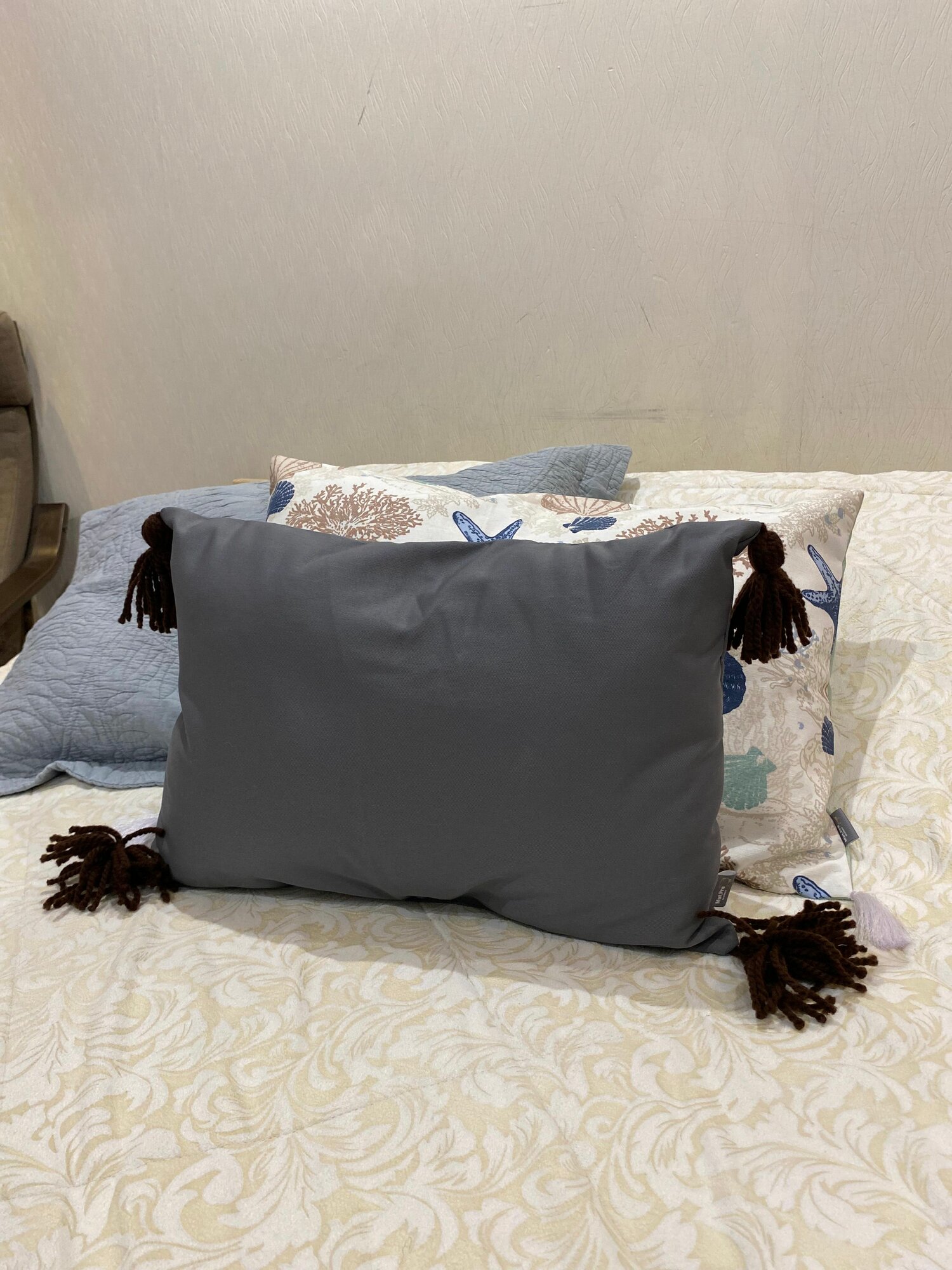 Подушка декоративная с коралловыми кисточками, 50*35, MotPro.brothers, серая