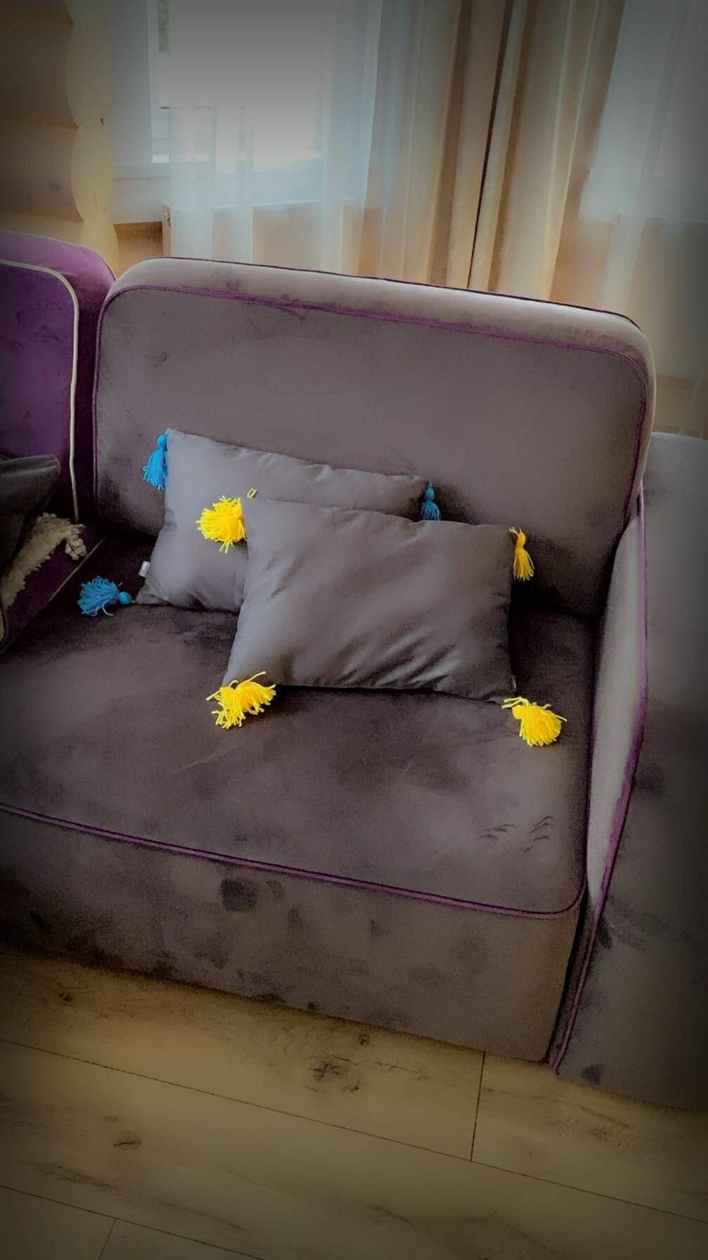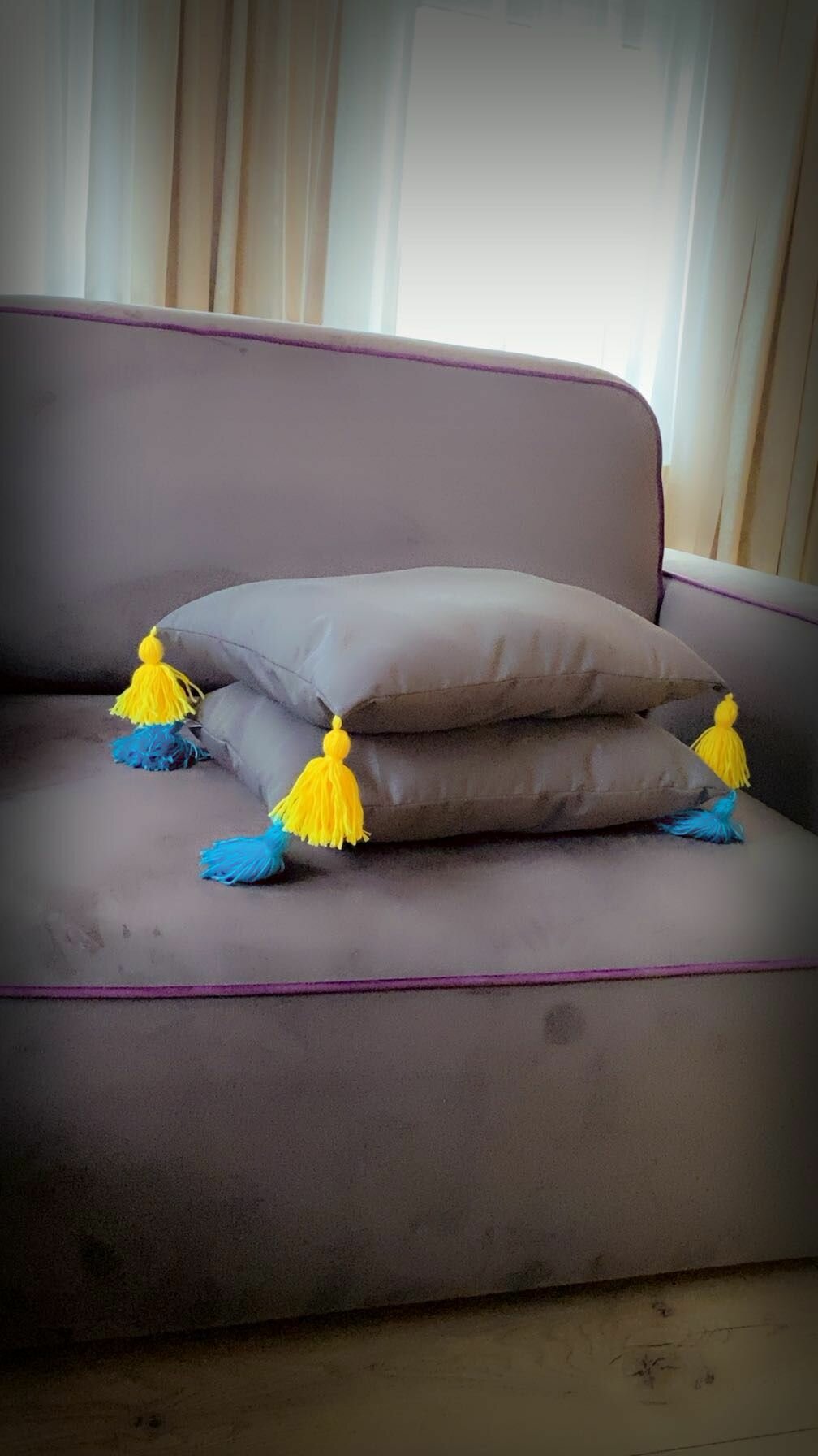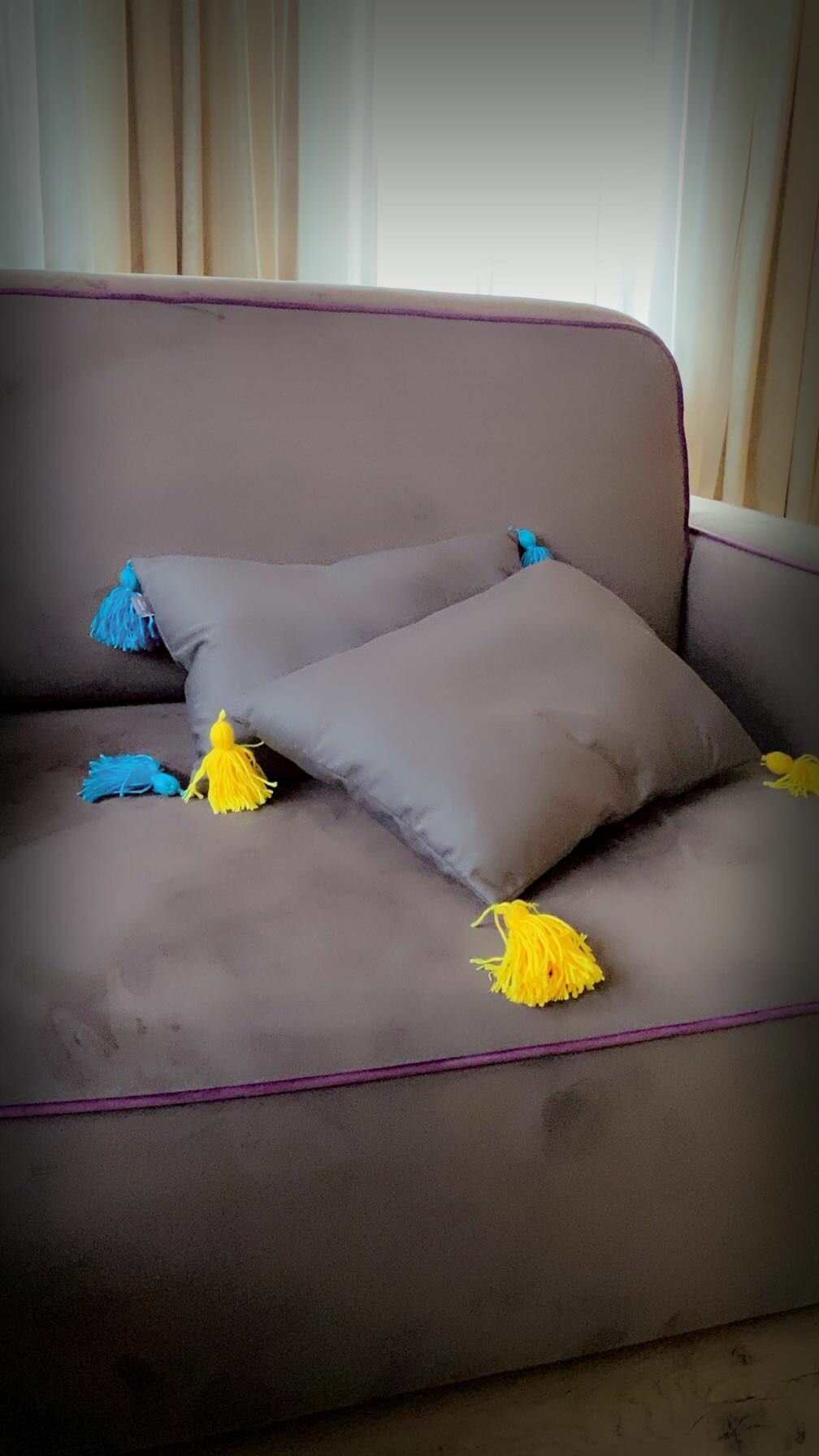 Подушка декоративная с желтыми кисточками, 50*35, MotPro.brothers, серая