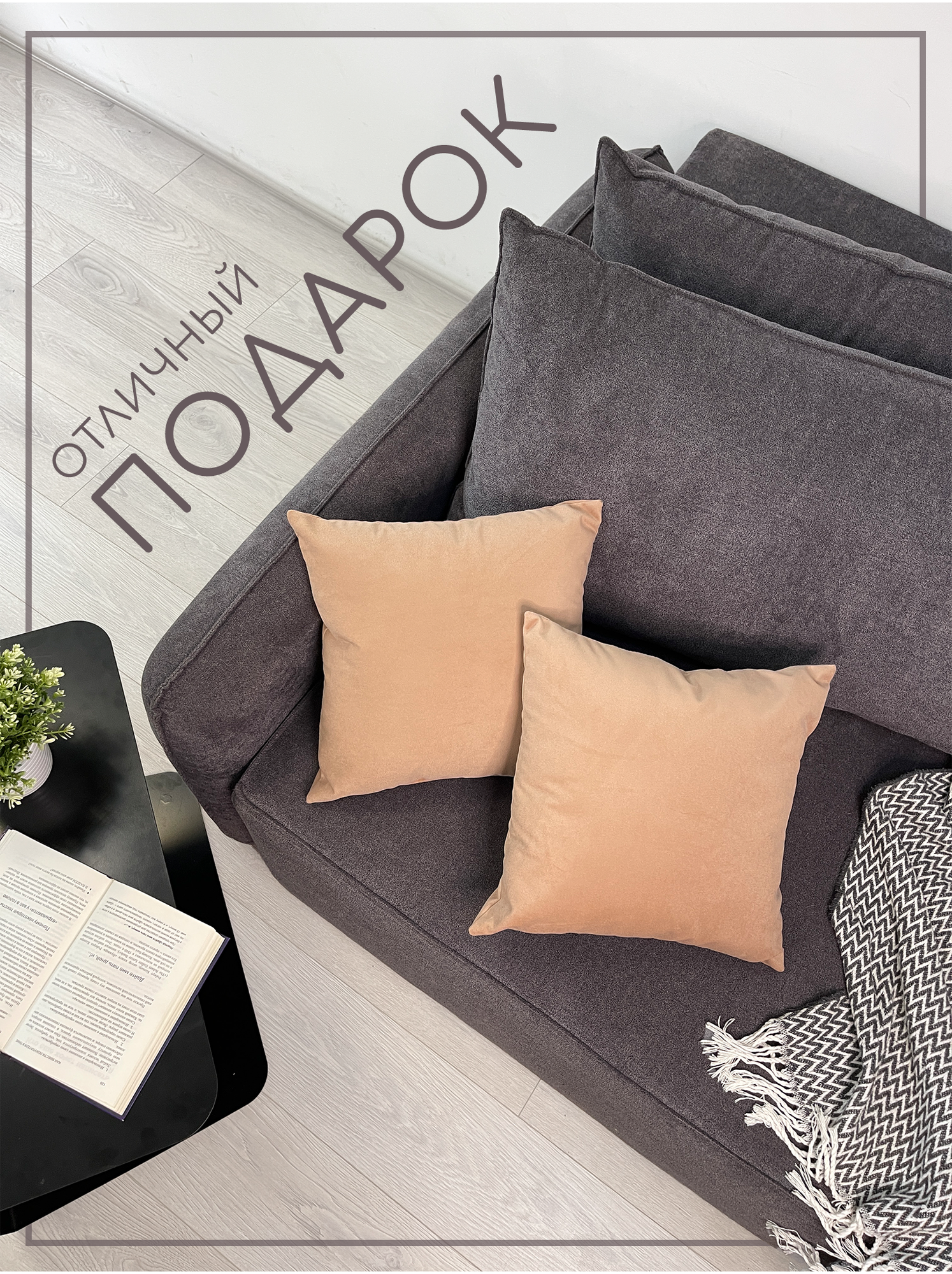 Декоративные подушки на диван, 40x40, 2 штуки, светло-коричневый интересное: