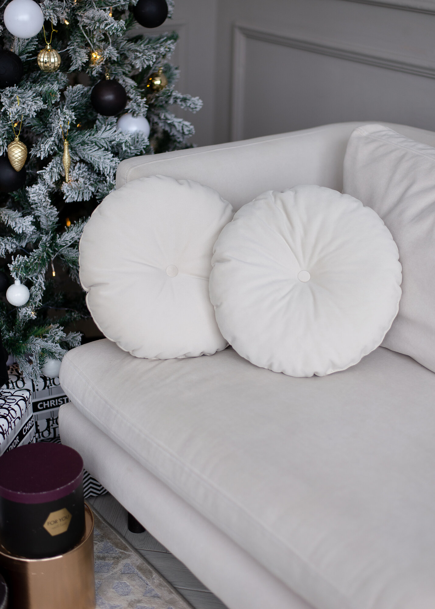 Декоративные подушки для дома круглые 40х40 белый велюр