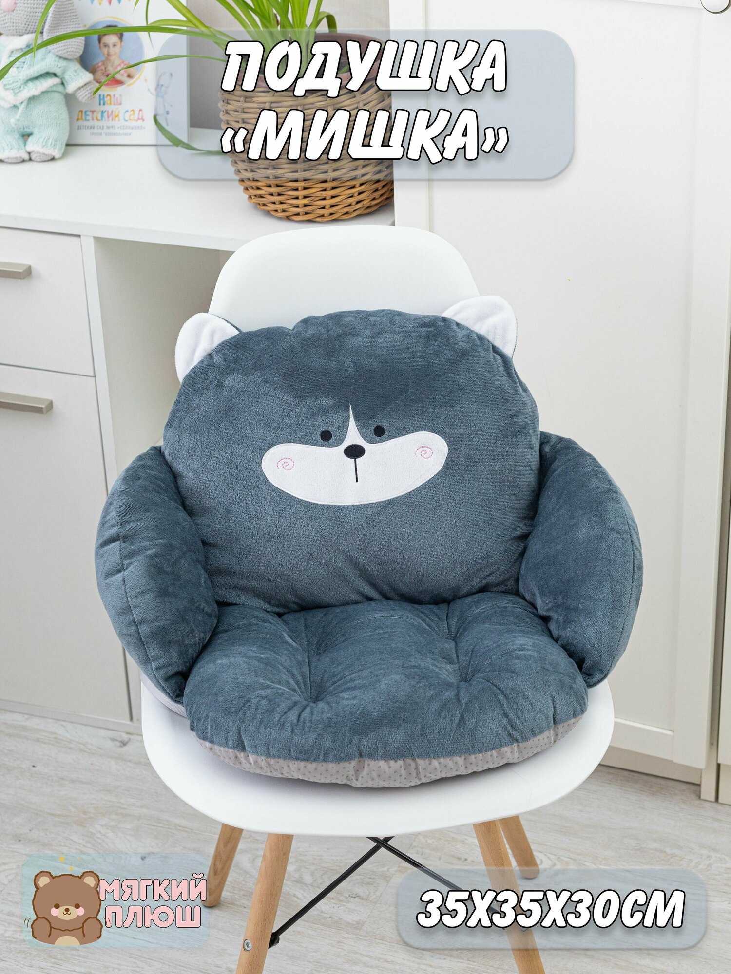 Подушка сидушка на стул Мишутка Медвежонок Медведь темно-серый интересное:
