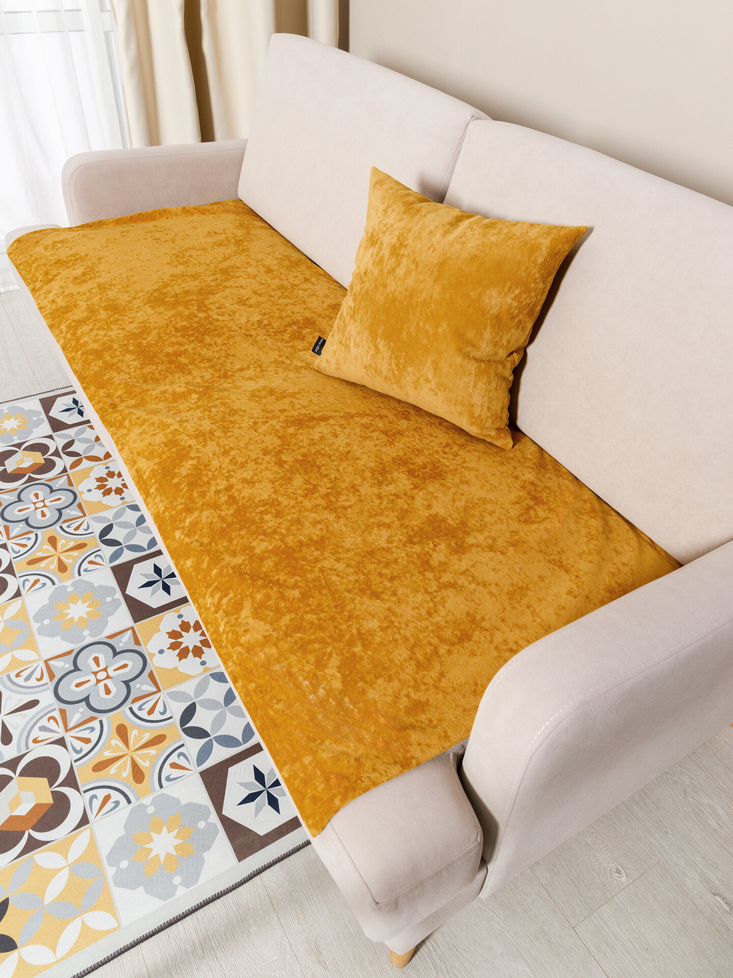 Подушка 45х45 OPERA BEIGE декоративная на диван, велюр