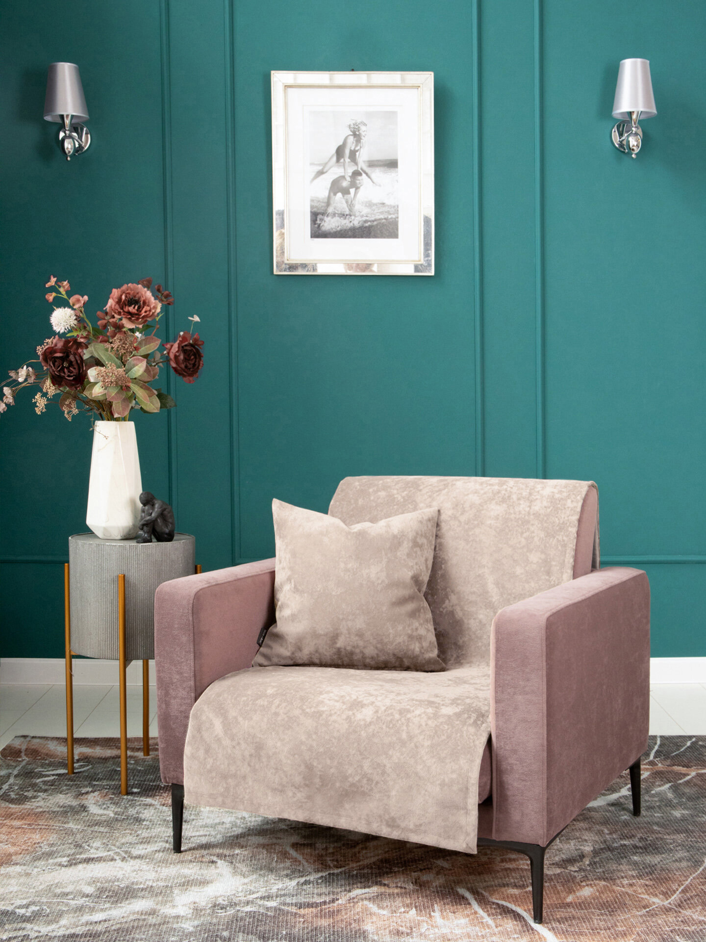 Подушка декоративная на диван OPERA ROSE велюр 45х45 см