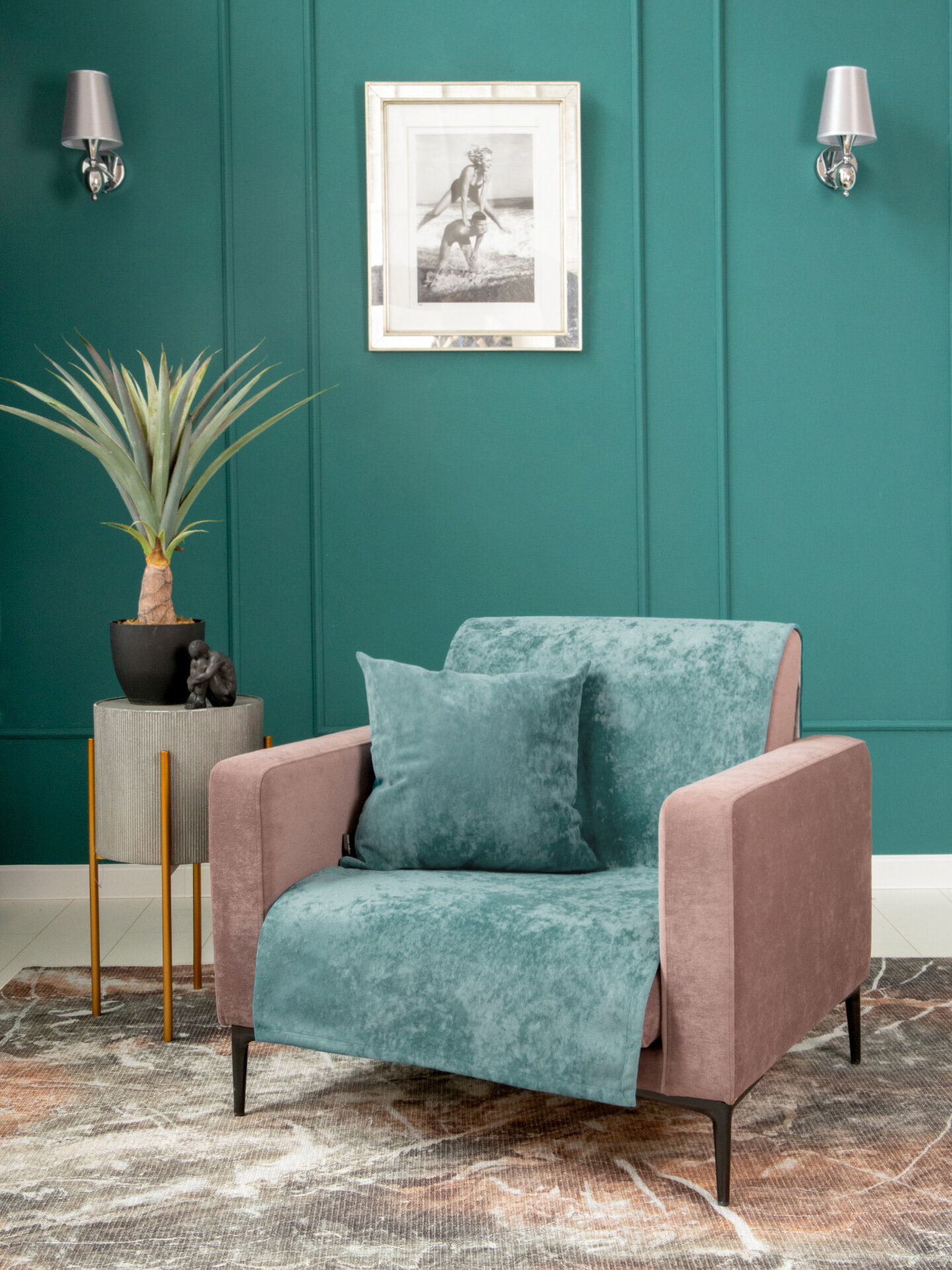 СохранитьПодушка декоративная 45х45 см OPERA MINT на молнии, велюр интересное: