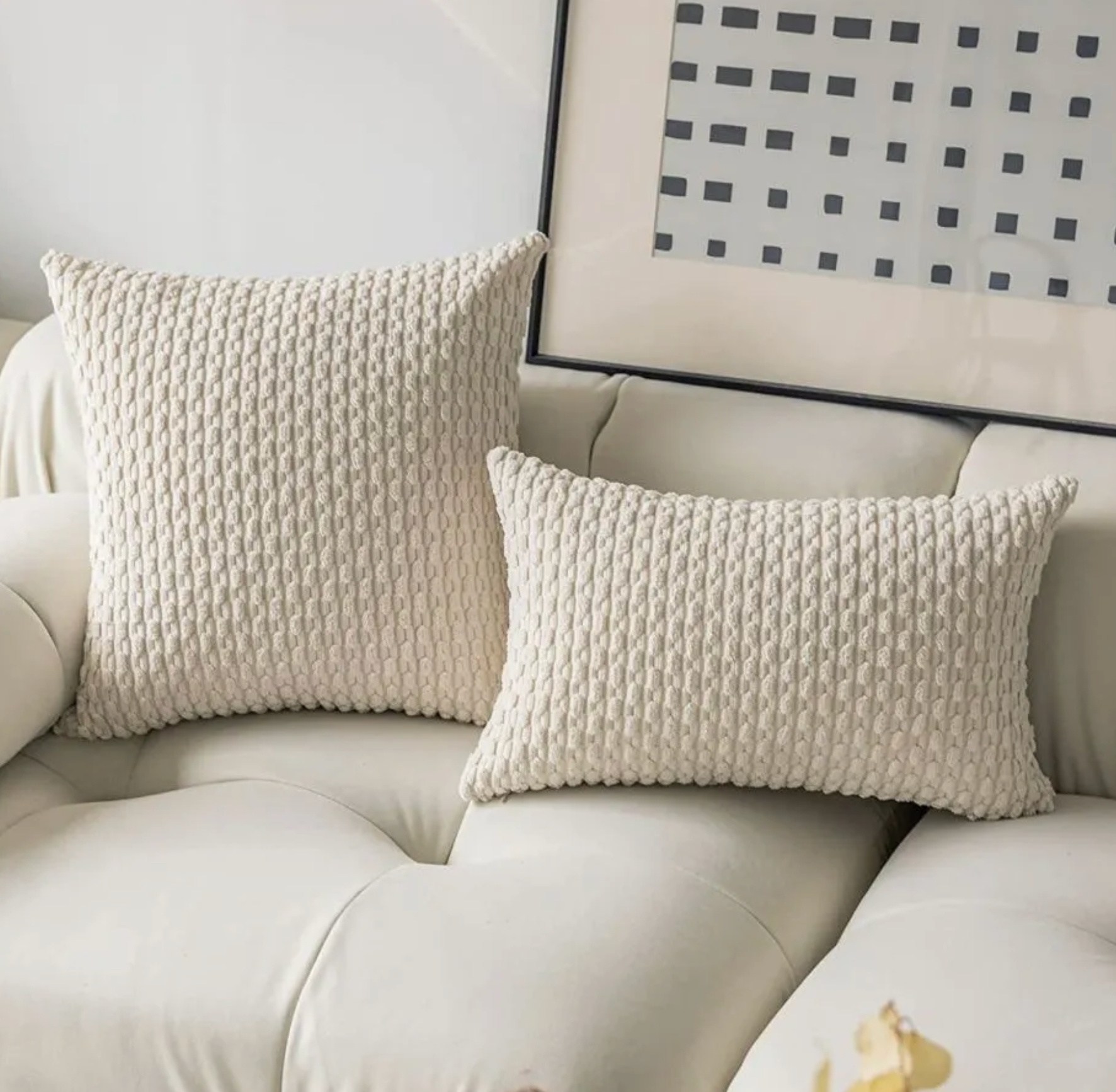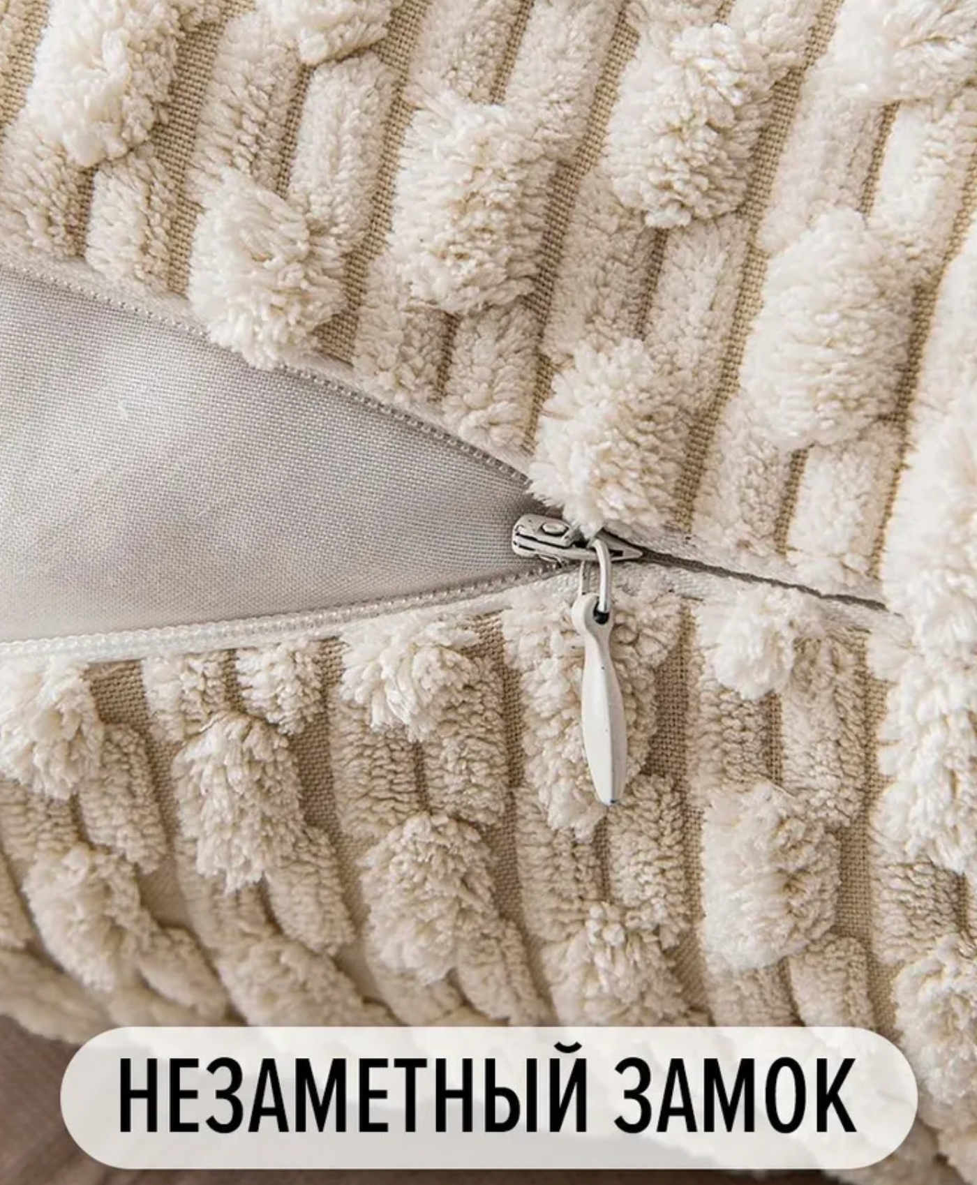 Наволочки декоративные на подушки 40x40 (2 шт) из плюша, в бежевом цвете, современный стиль для дивана, кровати и декора интересное: