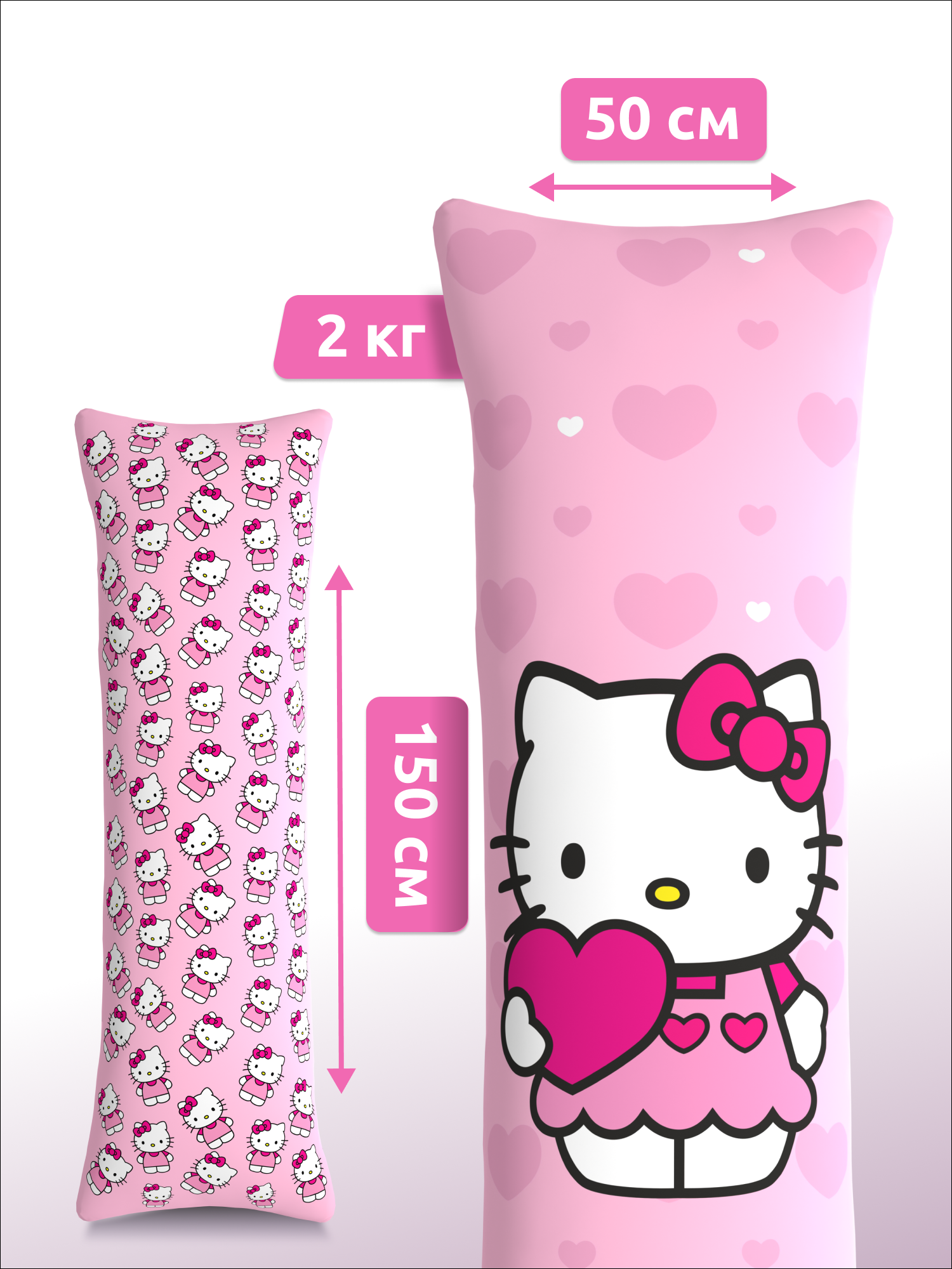 Дакимакура подушка длинная для обнимашек с принтом Hello Kitty хеллоу китти 150х50 см интересное: