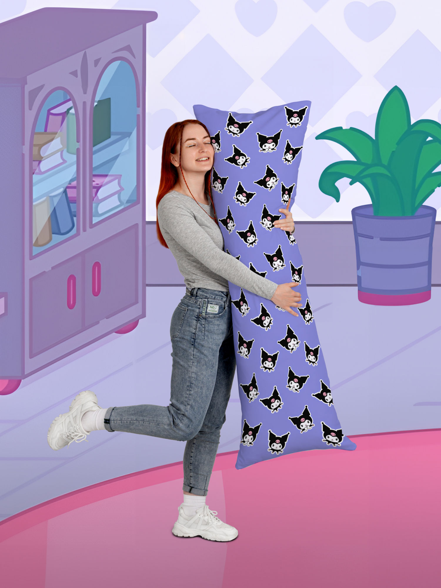 Дакимакура подушка длинная для обнимашек с принтом Куроми Hello Kitty хеллоу китти 150х50 см интересное: