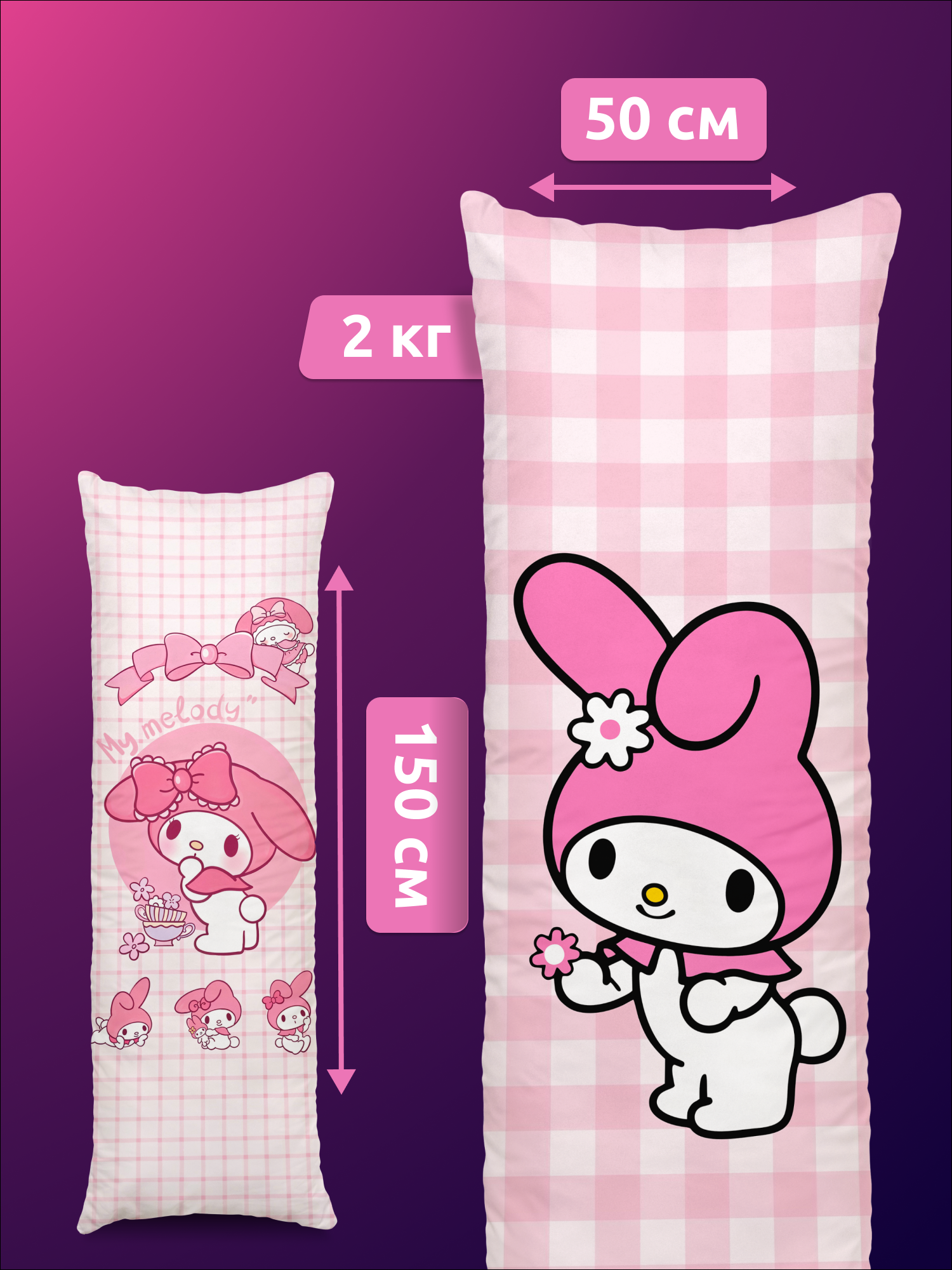 Купить Дакимакура подушка длинная для обнимашек с принтом My Melody хеллоу китти куроми 150х50 см