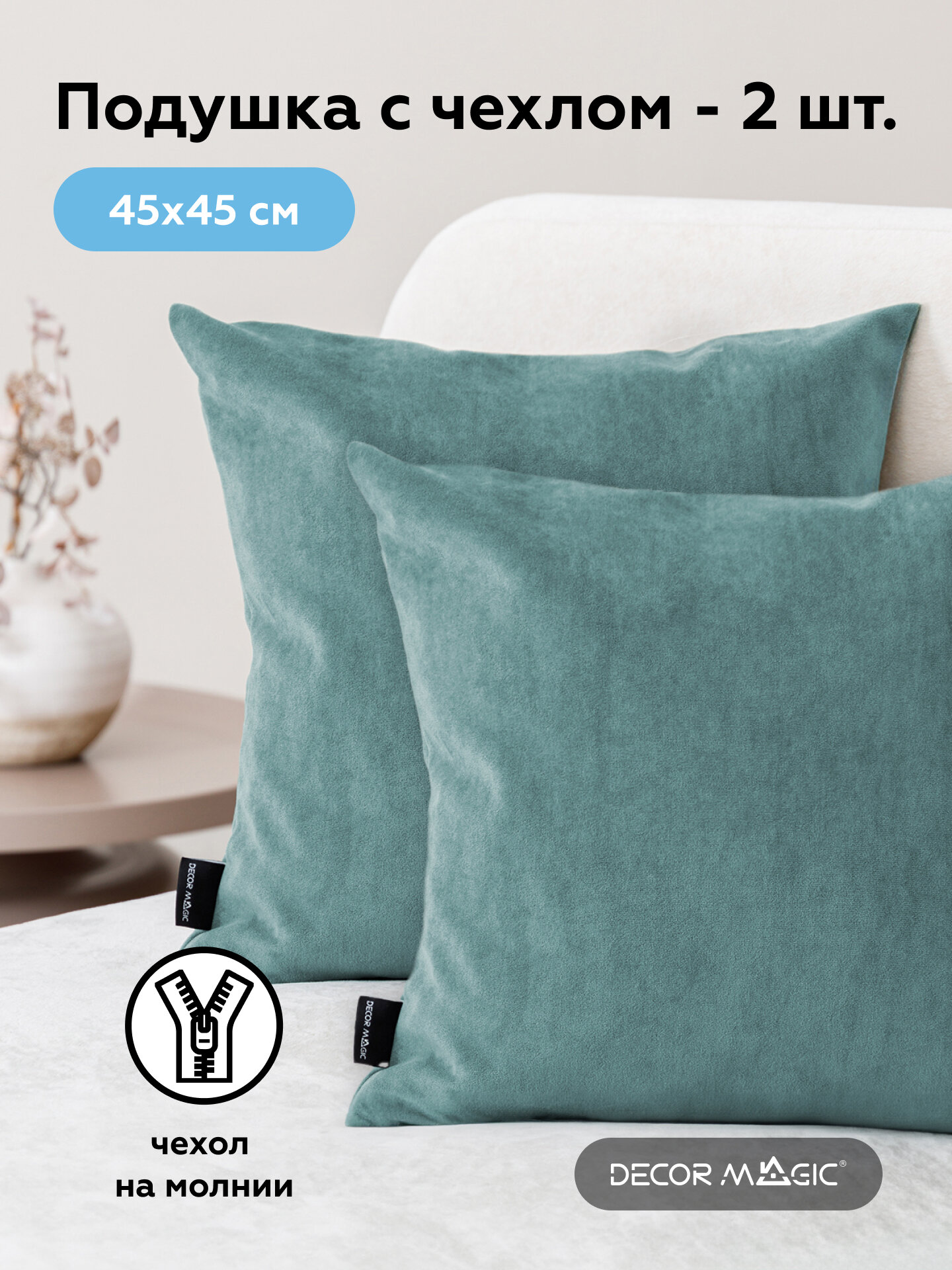 Декоративная подушка 2 шт, 45х45 велюр ULTRA TERRA
