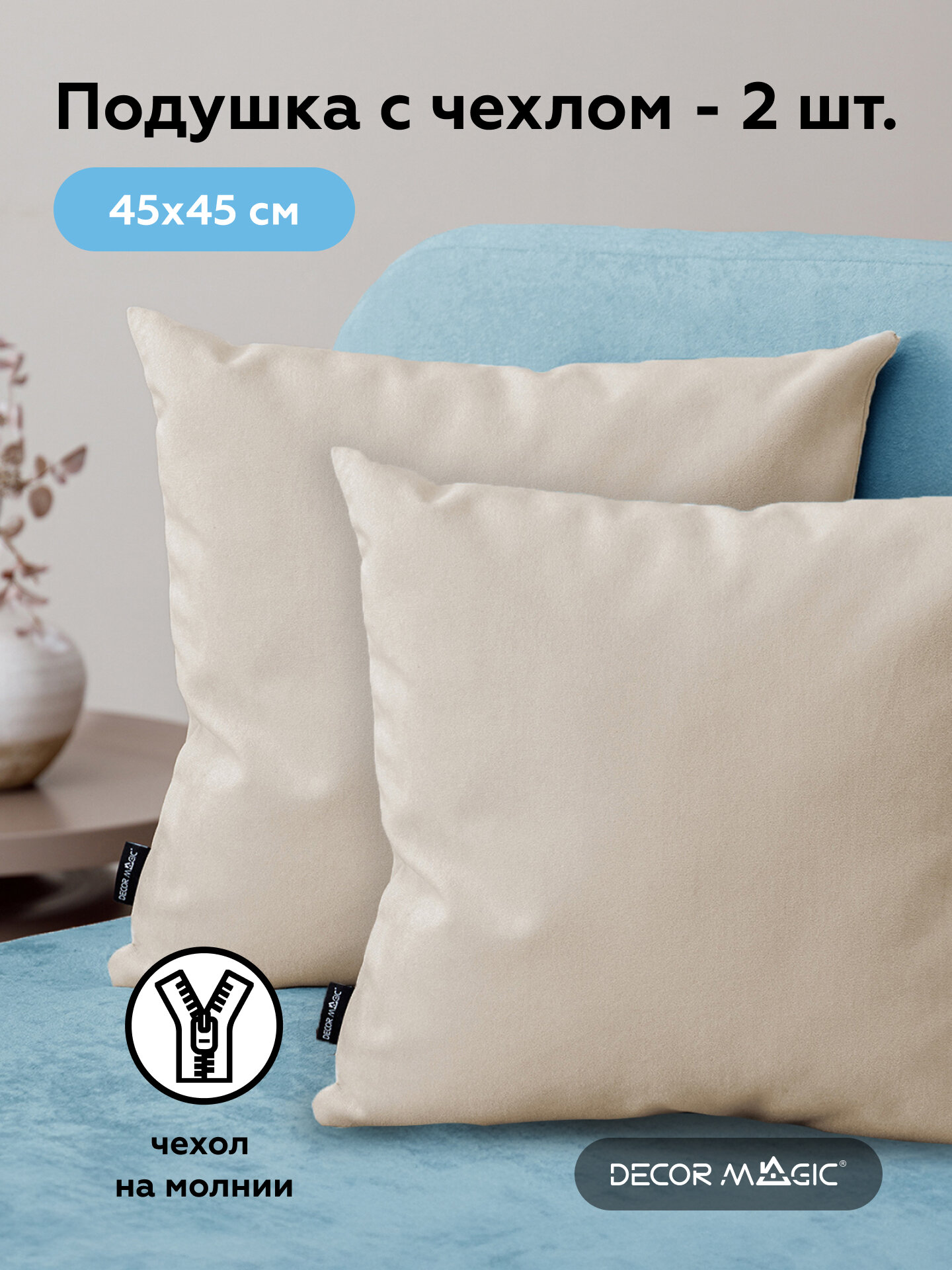Подушка декоративная 45х45 велюр ULTRA BEIGE 2 шт