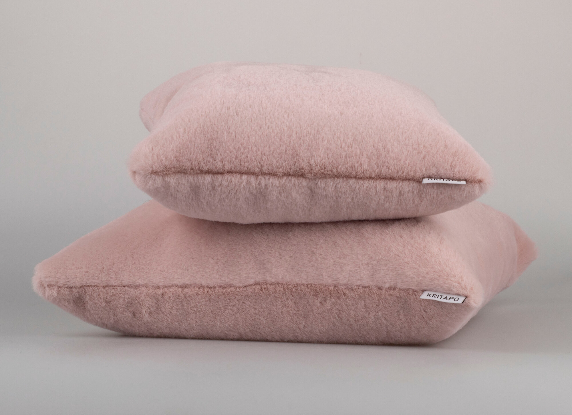Купить 30х30 см Декоративная подушка из экомеха Kritapo Розовая меховая подушка