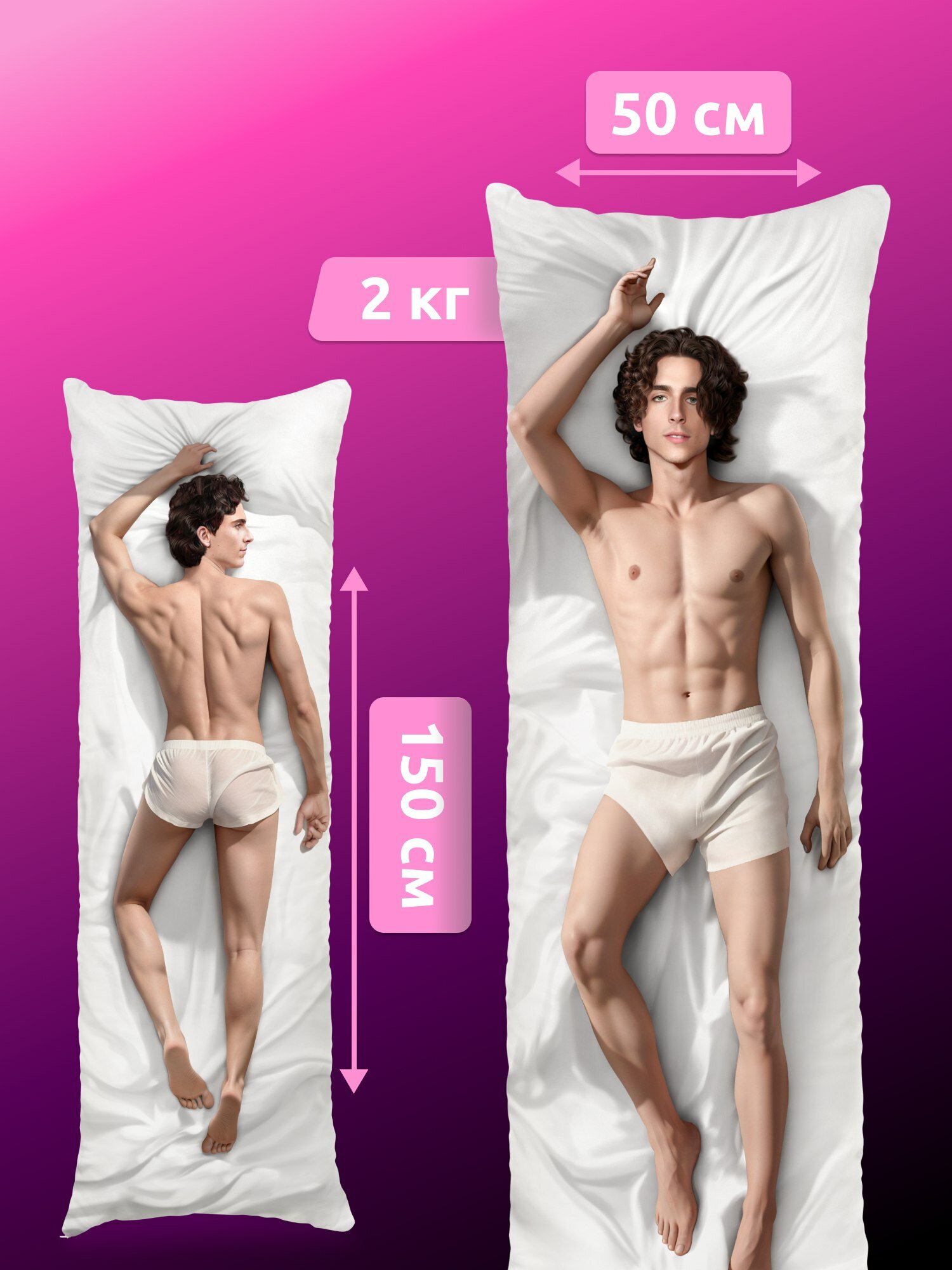 Дакимакура подушка длинная для обнимашек с принтом Тимоти Шаламе 150х50 см интересное: