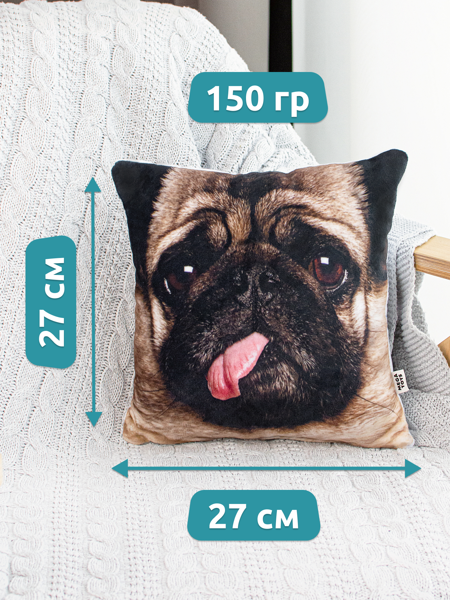 Купить Подушка декоративная на диван для дома MEGA TOYS детская в подарок с принтом 27x27 Мопс