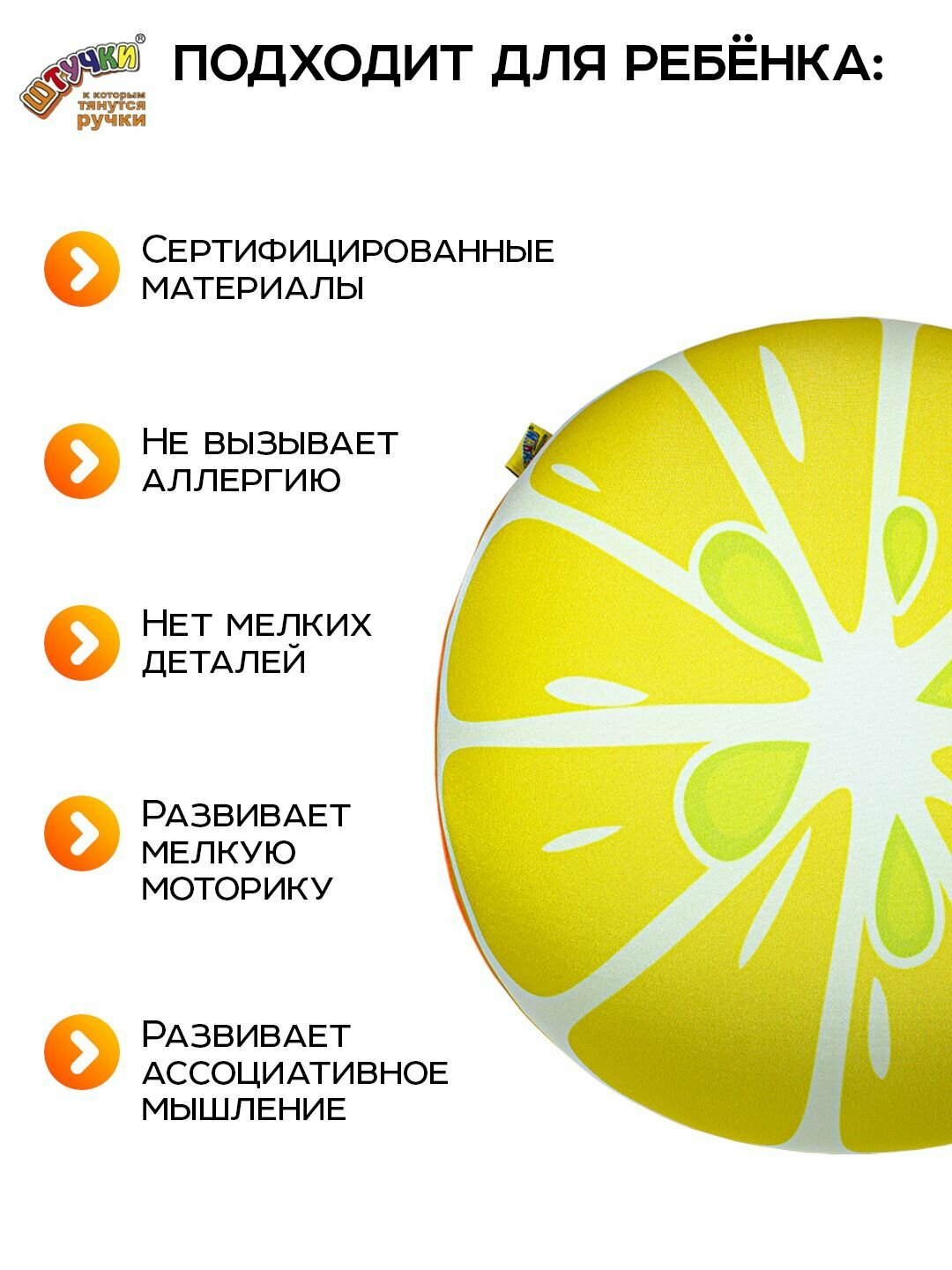 Купить Подушка декоративная- антистресс Штучки, к которым тянутся ручки "Апельсин"