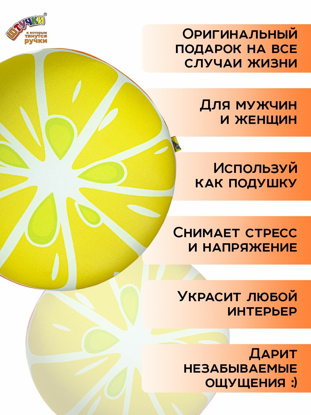 Подушка декоративная- антистресс Штучки, к которым тянутся ручки "Апельсин" интересное: