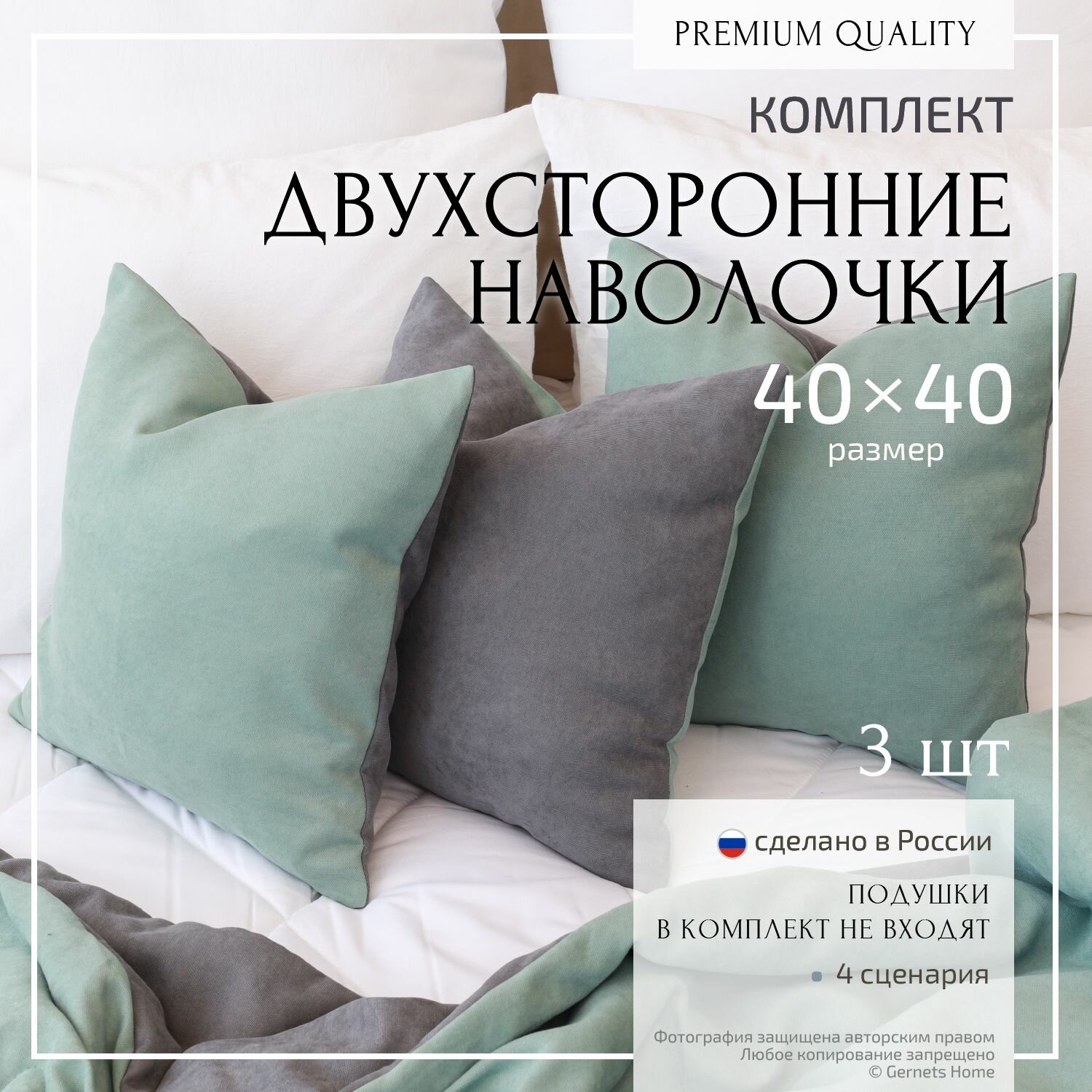 Наволочка декоративная 40х40 - 3 шт, чехол на подушку 40х40 на молнии интересное: