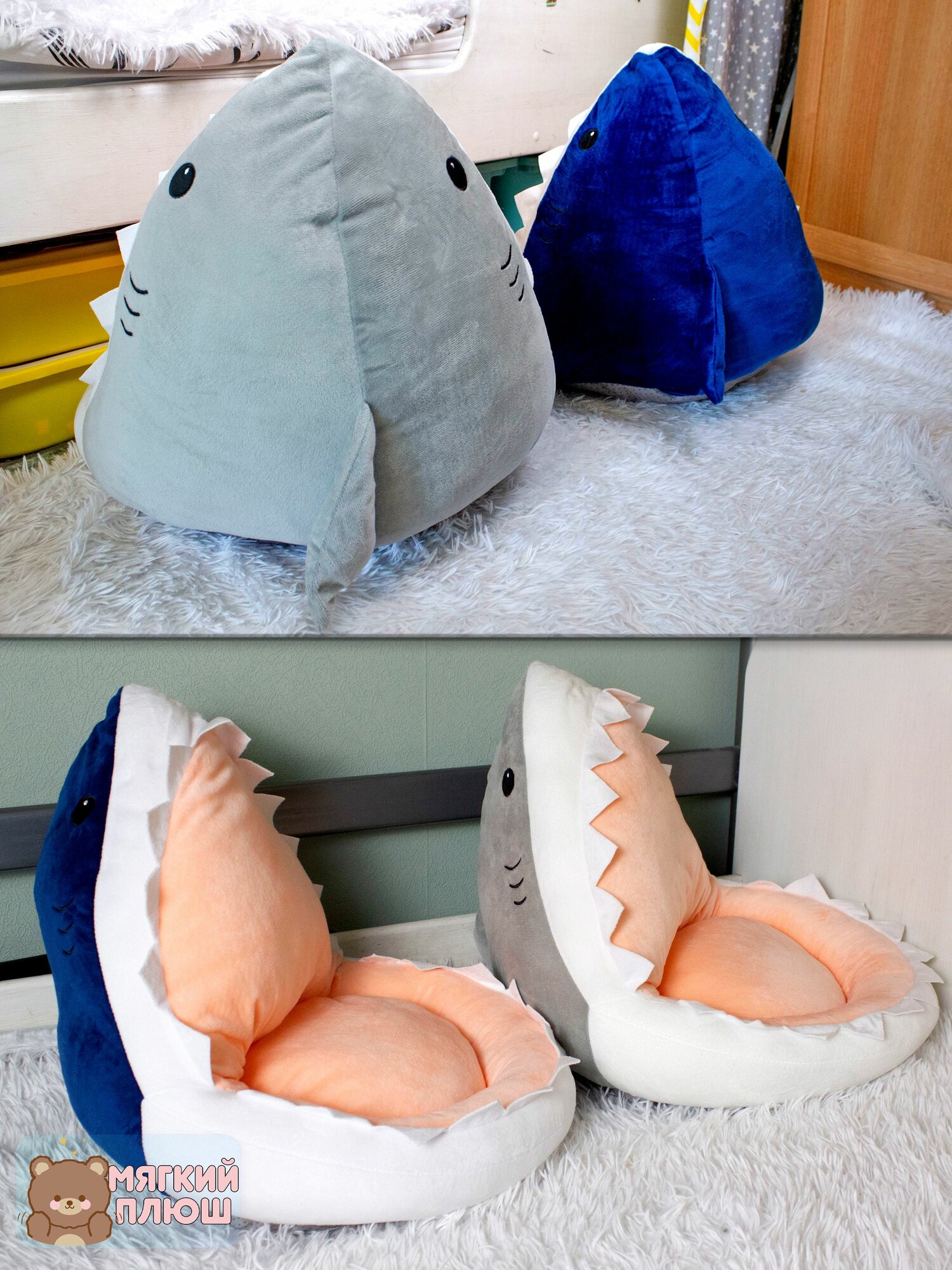 Подушка сидушка на стул Акула 40*40*40 см серая интересное: