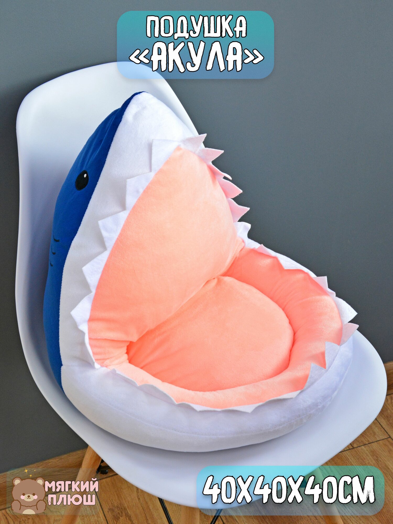 Подушка сидушка на стул Акула 40*40*40 см синяя интересное: