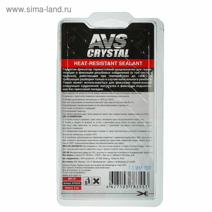 Купить Герметик-фиксатор (анаэробный) высокотемпературный 6 мл AVS AVK-131