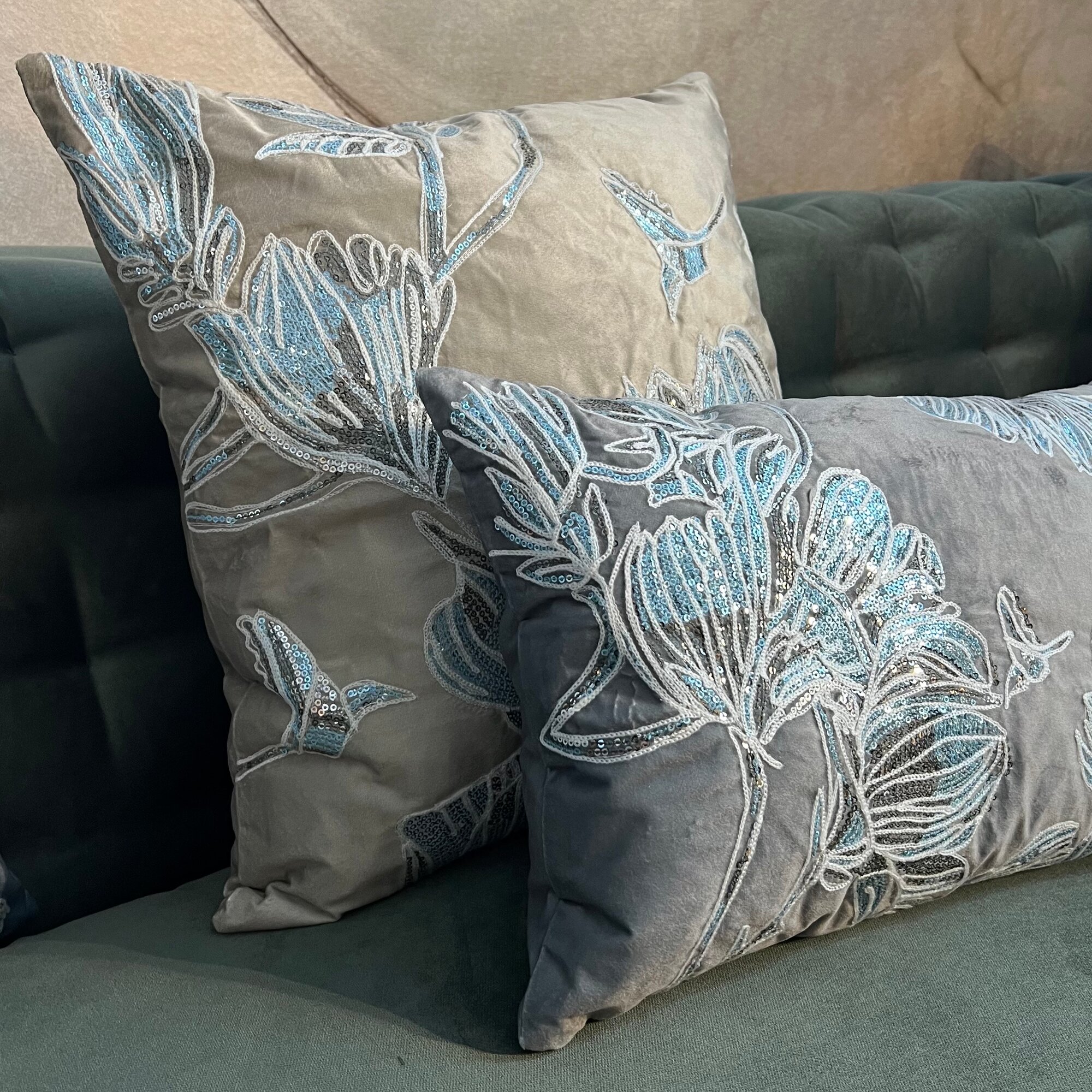 70SW-32902 Подушка с пайетками "Арт Магнолия" синий 45*45см