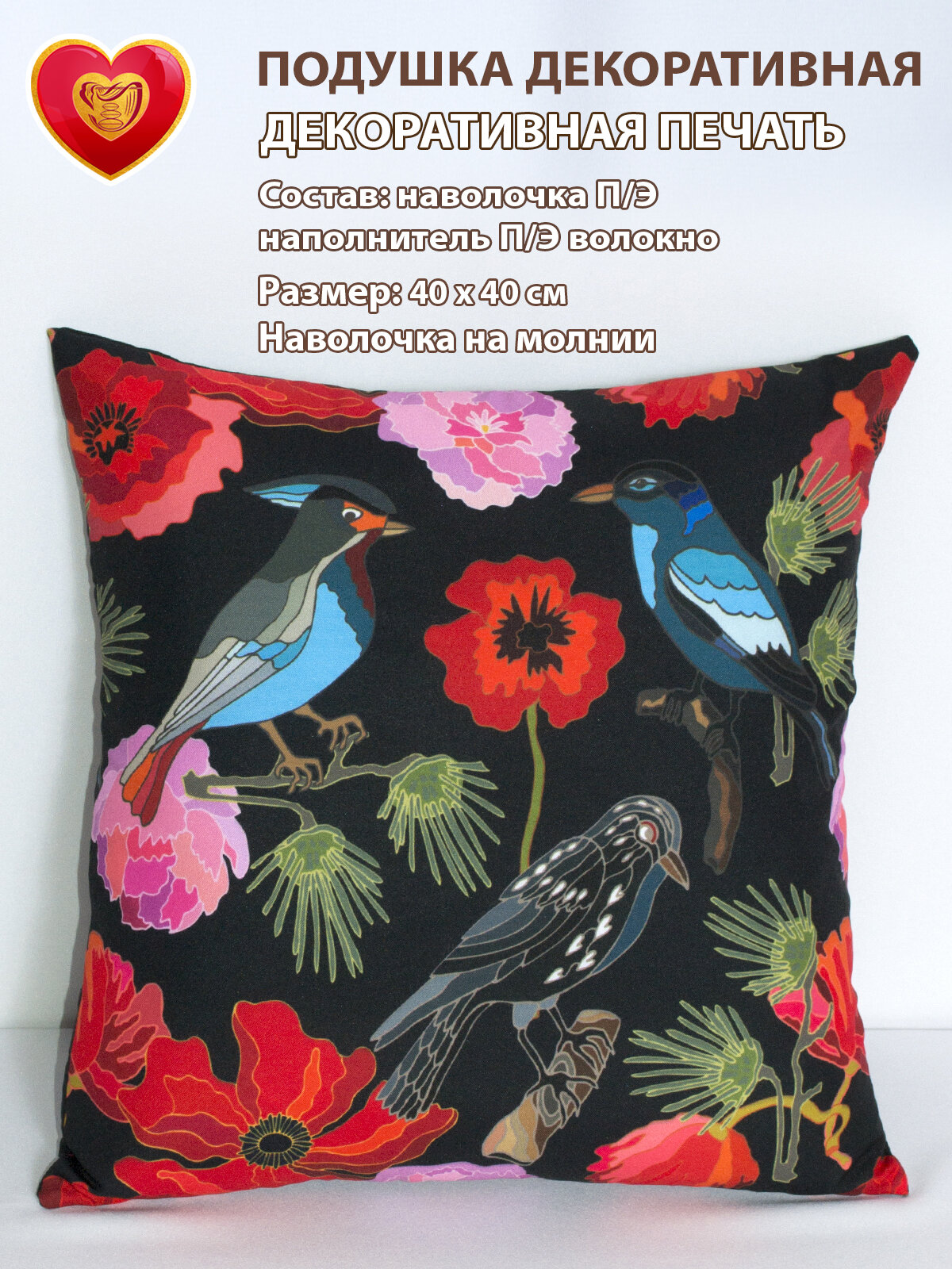 СохранитьПодушка декоративная Домалетто Птицы черный 40*40см интересное: