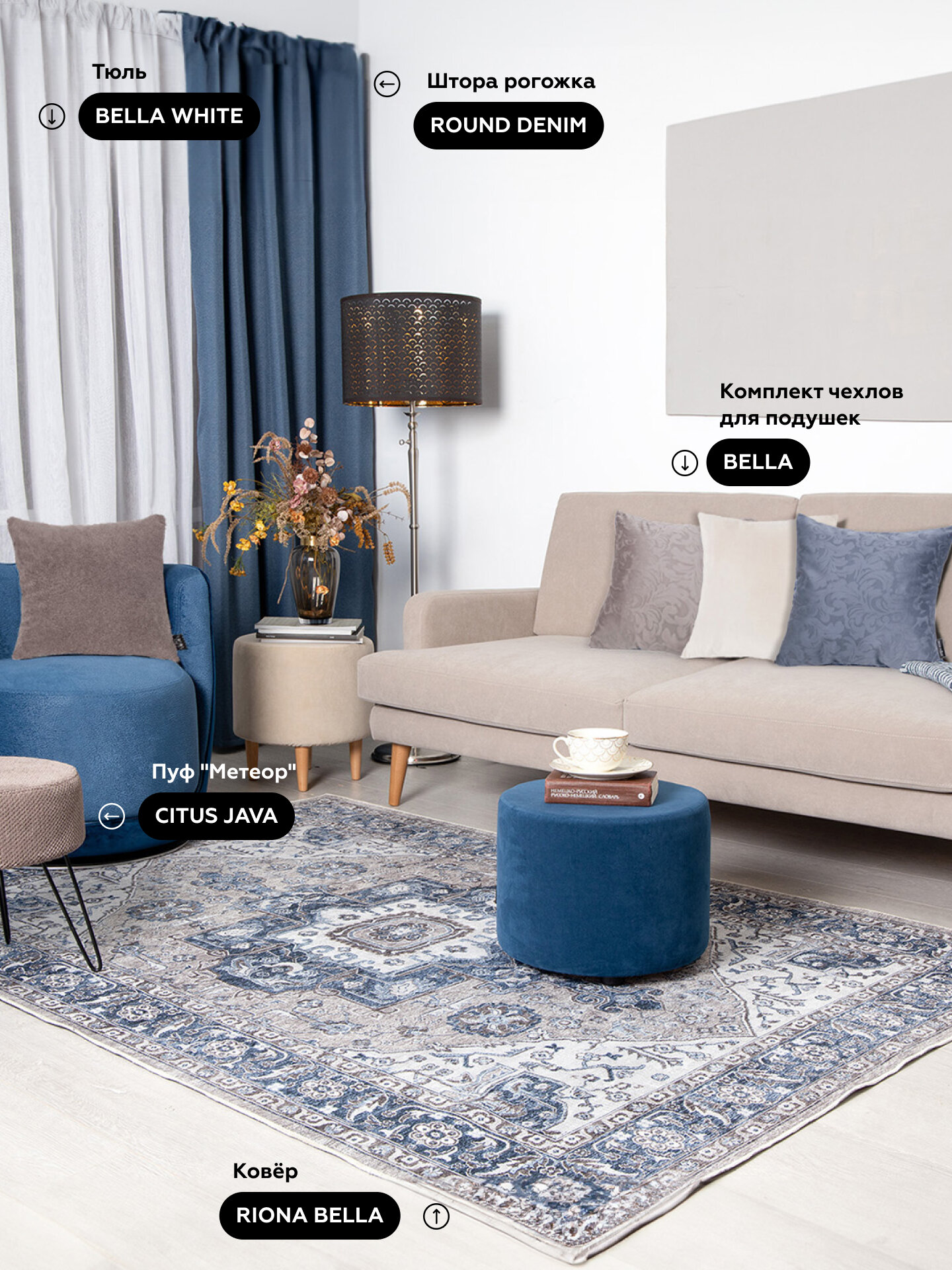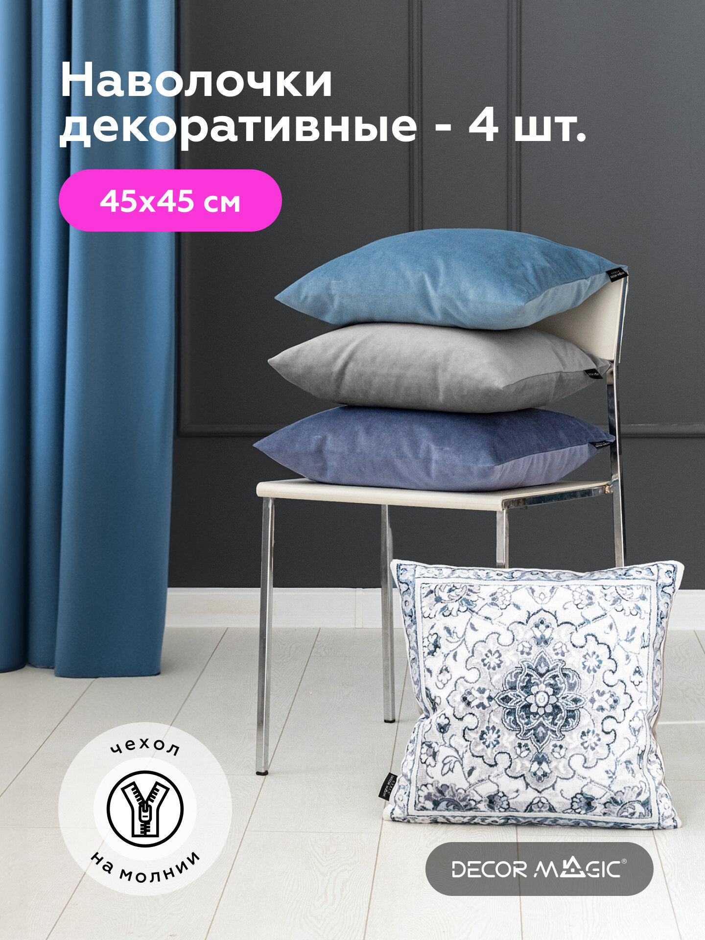 Комплект чехлов для подушек OTTO/RIKKO на молнии 4 шт, 45х45