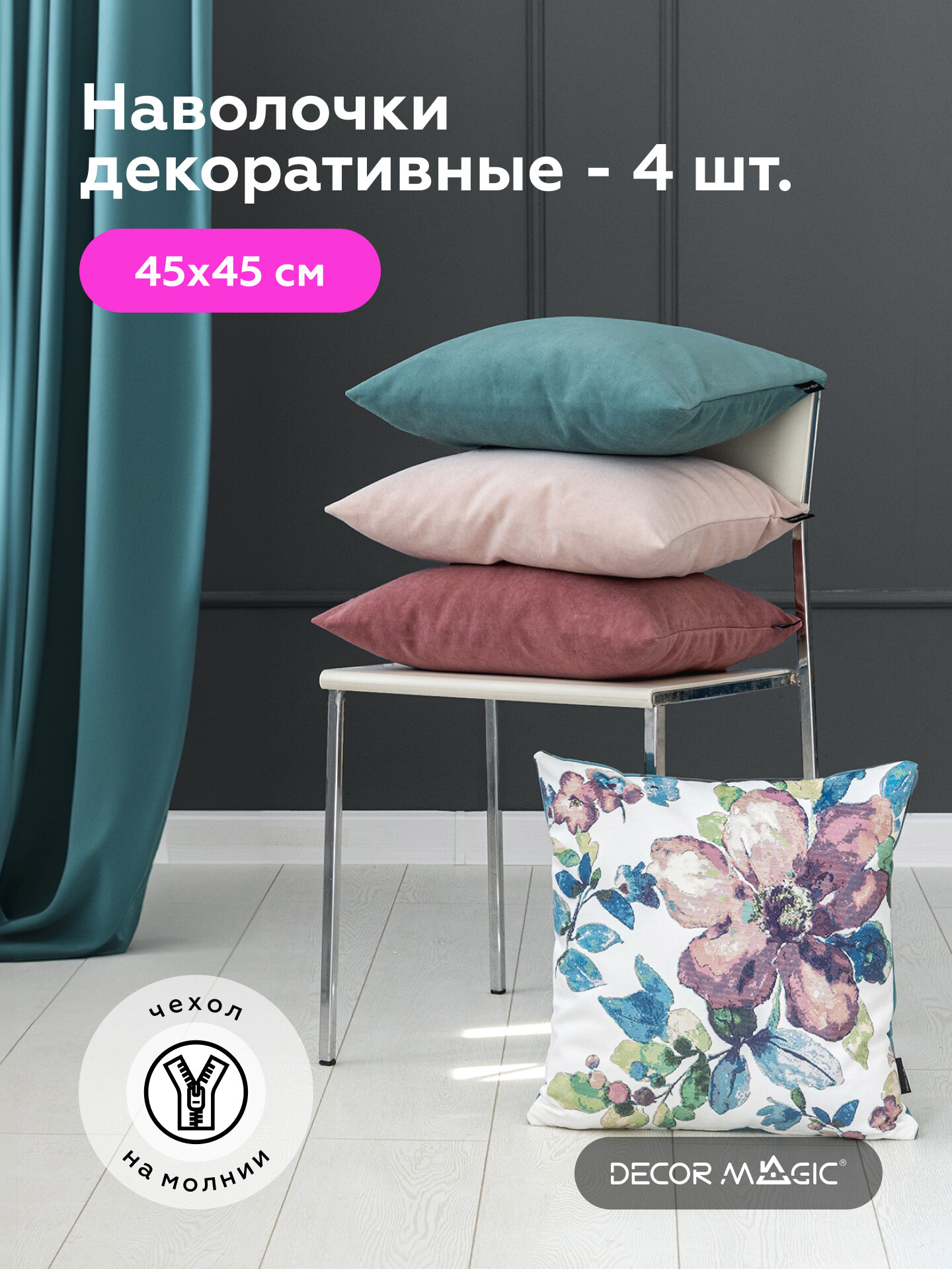 Наволочки декоративные на подушки 45х45 MEMORY/OASIS/VEGA 4 шт, на молнии, велюр